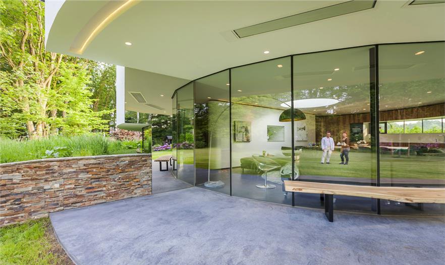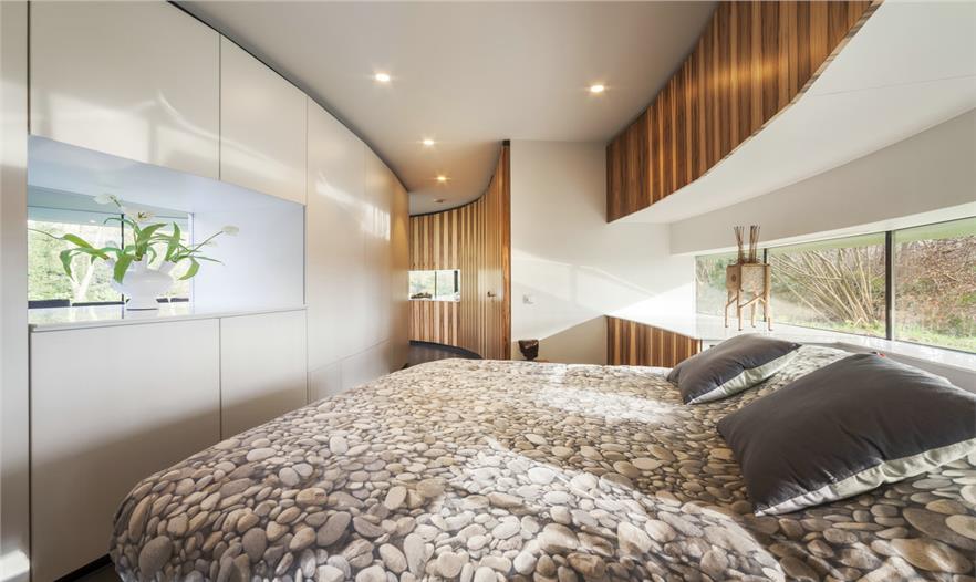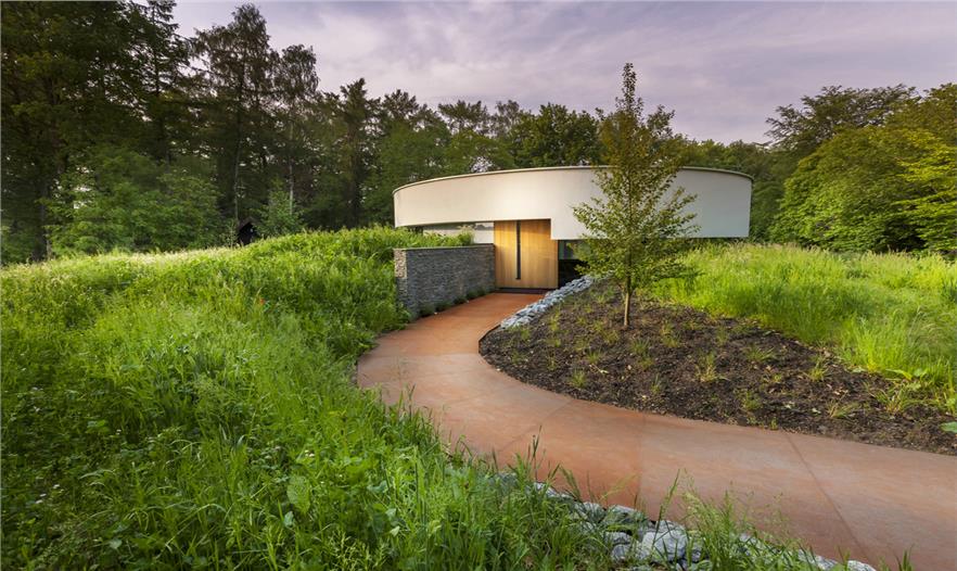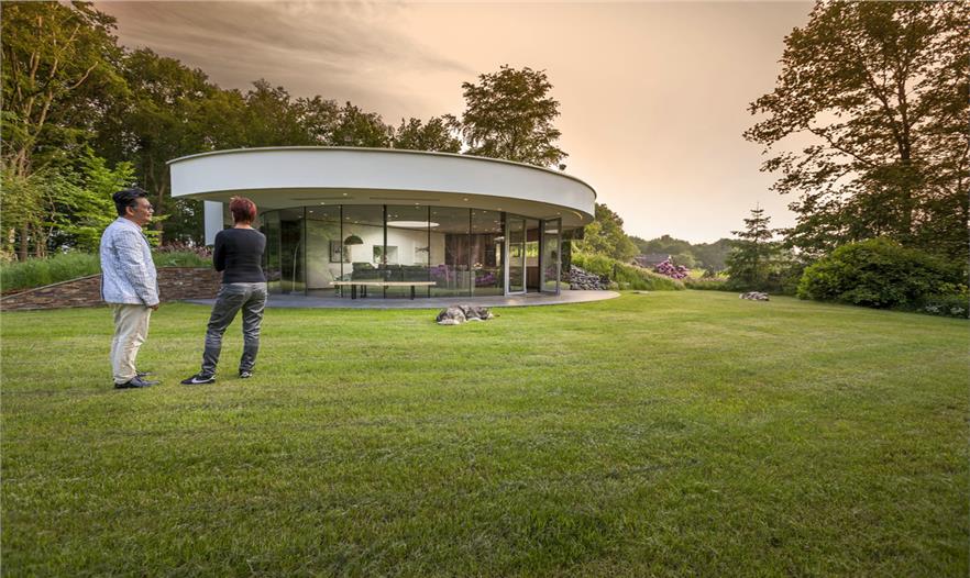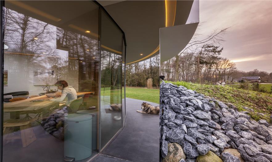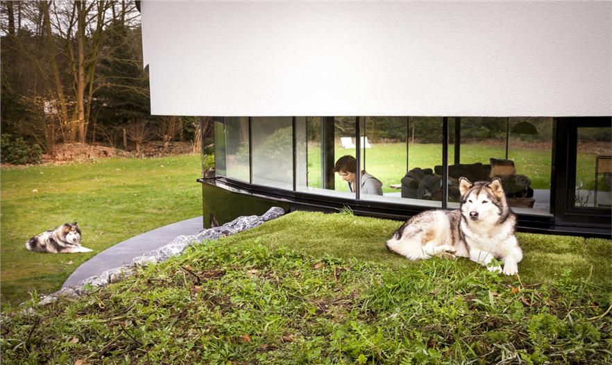 窗戶呈圓形環(huán)繞整個住宅設(shè)計會產(chǎn)生360度全方位視角,室內(nèi)外無縫連接。所以,與狗狗的連續(xù)視覺互動也成為可能——這也是我們這次為什么會想到設(shè)計一個圓形別墅的原因。