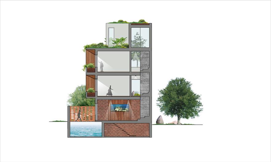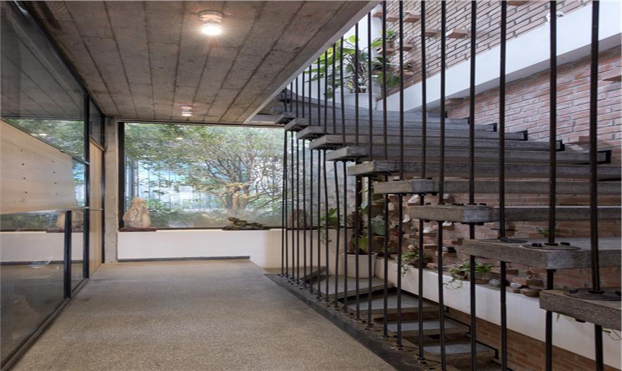 房子的中庭被分開了,一直通到中央最高的樓層。并且只有一個(gè)經(jīng)過花園的入口,這聽起來都很方便,但對(duì)在這里生活的居民和訪客來說需要弄清楚這些。混亂的生活可以通過日常行為來理清楚,穿過自然空間就可以進(jìn)到這個(gè)安靜而神圣的空間里。