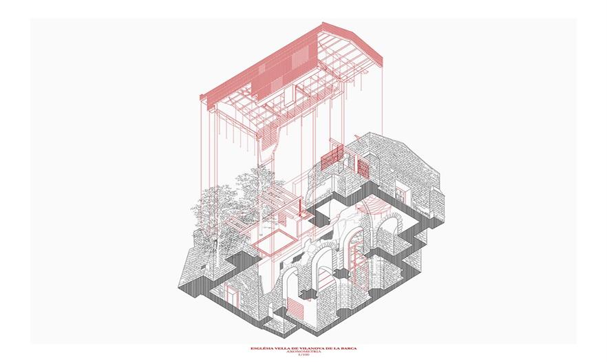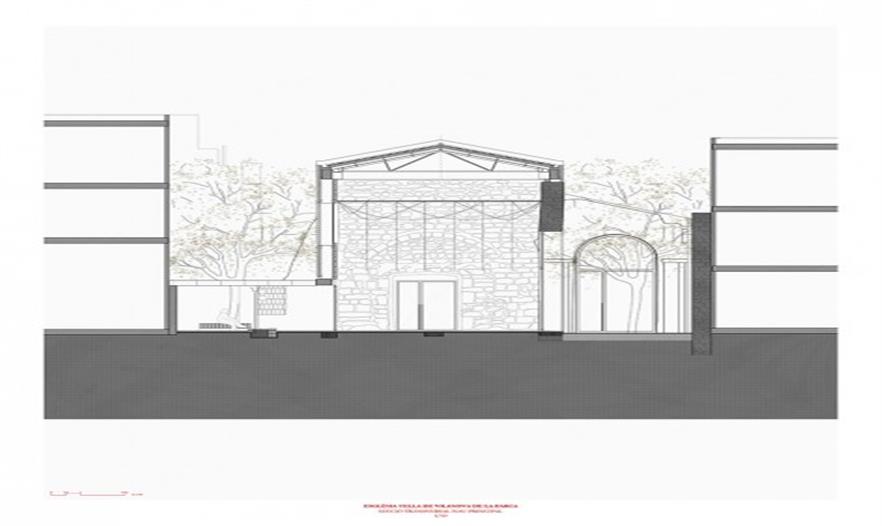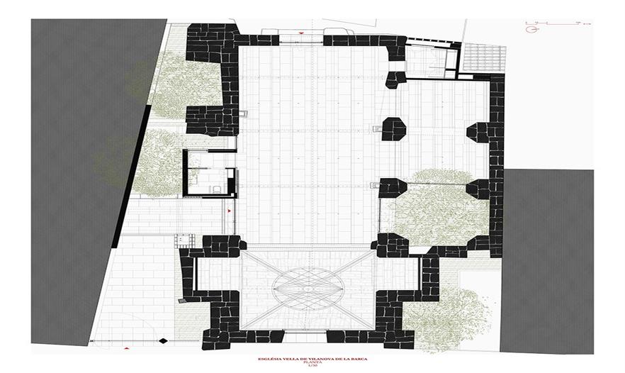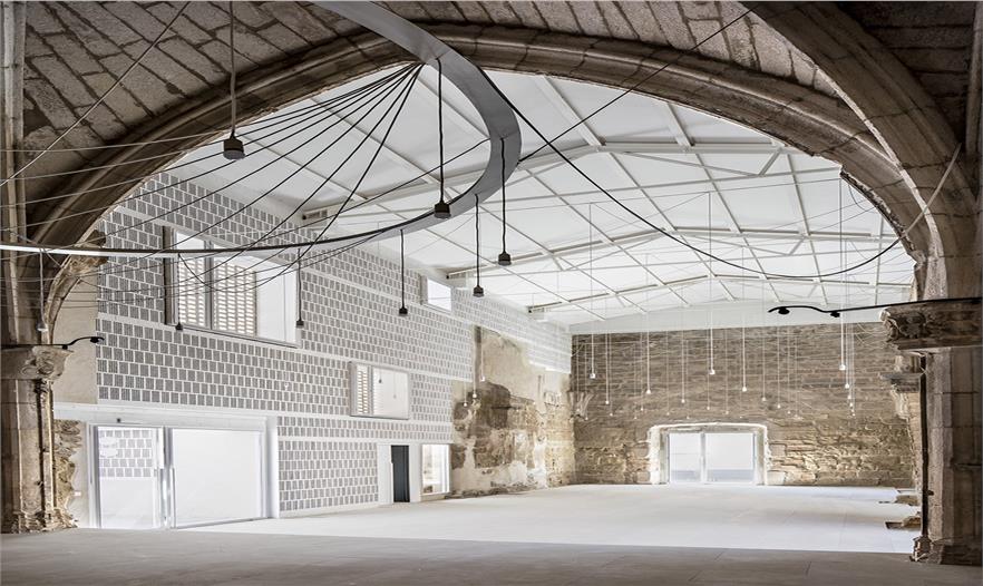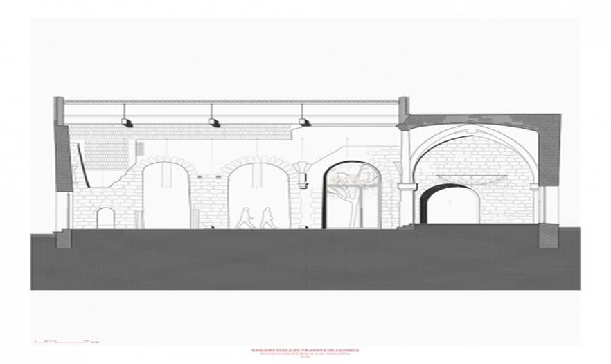 Vianova de la Barca古教堂是13世紀哥特式建筑,自1936年西班牙內(nèi)戰(zhàn)以來,這棟教堂被大面積摧毀,此后便一直處于廢墟狀態(tài),僅保留一個拱頂,一些中殿碎片和西立面。修建項目的主旨是恢復教堂的被焚毀部分并將它的舊有結(jié)構(gòu)改造成多功能大廳,以期建立這棟建筑的時代對話。