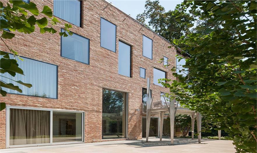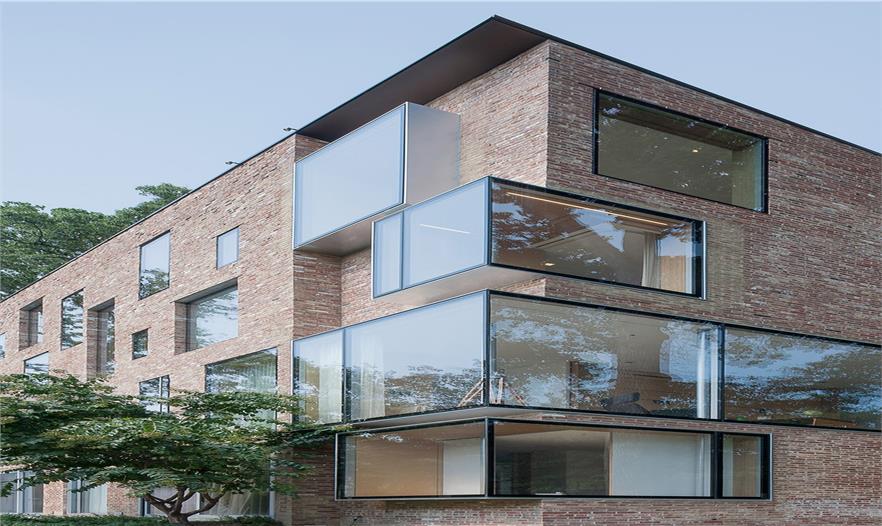 建筑北部立面基本保持其正式的和保守的形式,相對于南邊的設(shè)計就更加開放。用玻璃裝飾建筑間以及墻面之間的縫隙,使它們建立新的空間關(guān)系。在這樣的空間秩序營造下,整個南面變得更加正式和開放且更加融入自然。