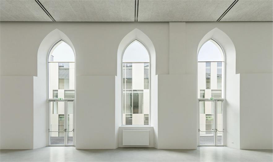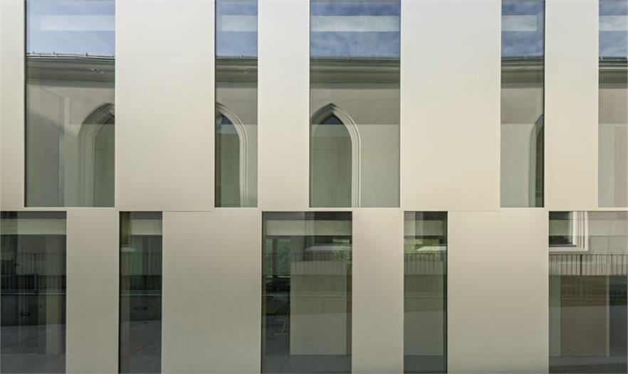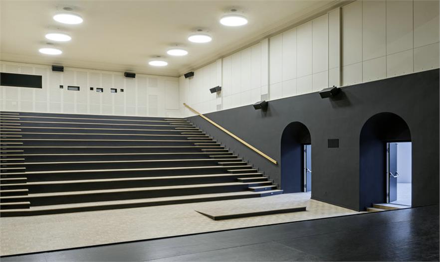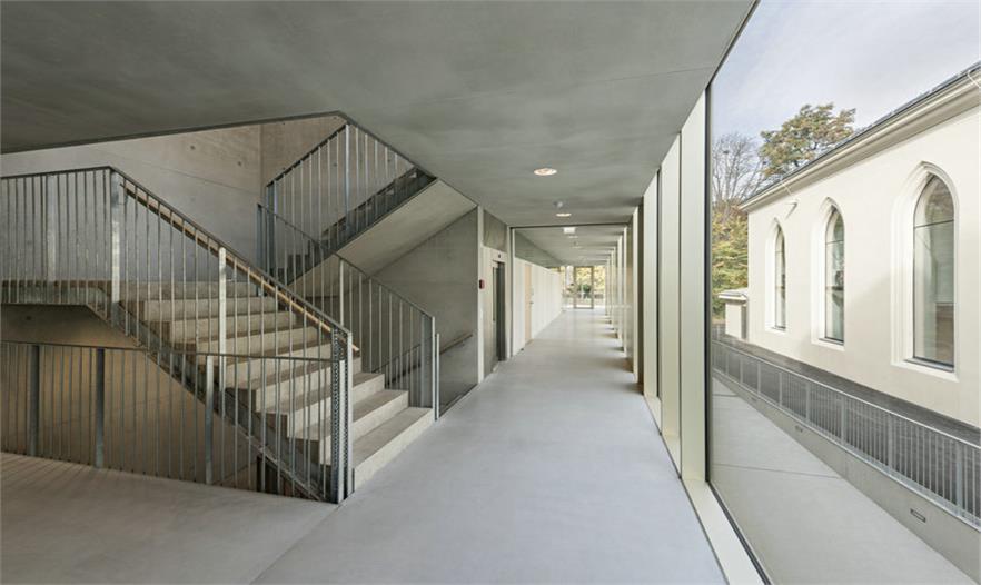 該項(xiàng)目的核心是特殊區(qū)域與歷史建筑構(gòu)造之間的關(guān)系,其功能是一方面作為一個劇院,另一方面是這個新學(xué)校的擴(kuò)張區(qū)“Opposites attract”。DFA事務(wù)所試著讓這個歷史建筑(一個古老的馬術(shù)學(xué)校)更具開放性。這一點(diǎn)也以現(xiàn)代方式體現(xiàn)在新學(xué)校建筑中。對立面的玩法——不同技術(shù)、建筑和材料——也由擴(kuò)張建筑立面上的古代建筑面畫展現(xiàn)出來。