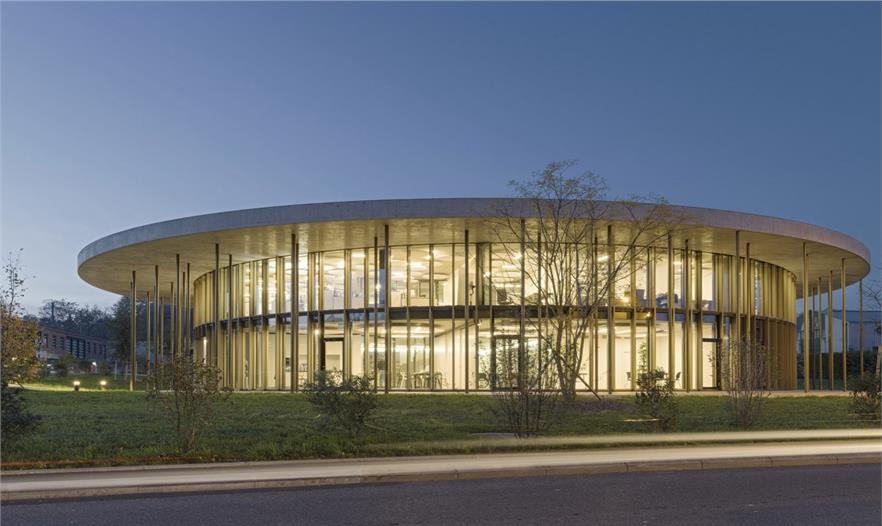 新的國際摩托車運動聯(lián)合會總部位于連接日內(nèi)瓦和沃州的鐵路和州際公路之間,其所在坡地上長滿樹木,周邊環(huán)境如同公園一般自然美麗。建筑位于基地地勢較低處,圓形的結(jié)構(gòu)給附近的人們留下了深刻印象。