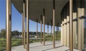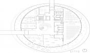建筑主體為圓形,橢圓形地基和屋面相互錯開,由森林般的柱網(wǎng)連接,讓人感受到摩托車世界的速度和動感。 當人們從州際公路或鐵道上經(jīng)過時,富有節(jié)奏感的垂直柱網(wǎng)和后退的立面將呈現(xiàn)給他們一種動態(tài)的效果。人們可以通過基地邊的步道進入建筑。主入口與道路直接相連,次入口被設在北側(cè),連接員工停車場。