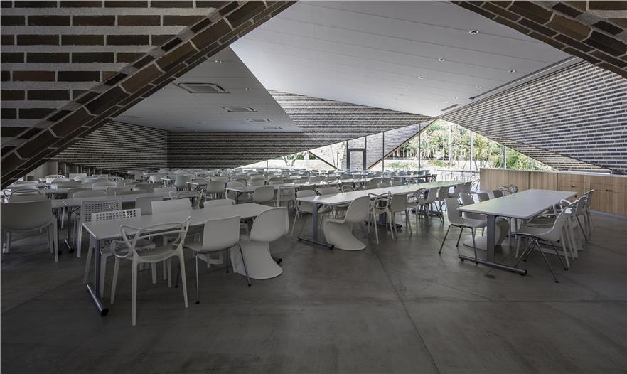 "Roseroc"的功能定位是員工的自助餐廳和提供飲食服務(wù)的活動(dòng)中心。這家公司主要從事生產(chǎn)普通用途的電纜和導(dǎo)管,“roseroc”建立在工廠建筑區(qū)。建立“Roseroc”的目的主要有三:第一,作為員工的自助餐廳,員工們可以在這里舒適地度過(guò)他們的午餐休息時(shí)間,在工作室里待久了之后仍可以感到精神充沛;第二,作為多用途空間,員工們可以利用這個(gè)區(qū)域來(lái)開(kāi)會(huì),舉辦娛樂(lè)活動(dòng)等;第三,象征著公司欲打進(jìn)國(guó)際市場(chǎng)的期望。