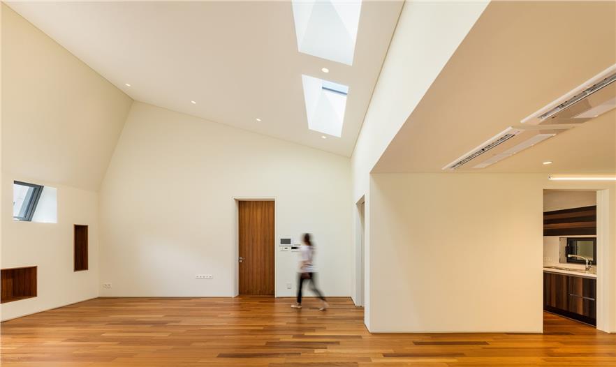 Deep House住宅的另一個顯著特征是其角窗的運用。一旦這些房間的布局確定,房屋轉(zhuǎn)角就會通過安裝盒狀窗戶暴露出來。房屋和角窗的面積進(jìn)行策略性繪畫,最大化室內(nèi)觀賞戶外的景色,同時最小化冬季的負(fù)面影響。它也突出了最重要的空間理念元素:微觀空間。角窗是窗戶,同時營造屋中屋,不會被任何墻壁這樣的實體界限隔離開。這個房間可以是一個空間,但我們能明顯地感覺到獨立空間的存在。Kim意識到人們的這種喜好,不管房屋的規(guī)模讓角落更加舒適、有用,而且他想要利用人們的這種直觀反應(yīng)。Deep House項目是一個探索創(chuàng)意方案進(jìn)行工作的程序,讓對抗元素結(jié)合起來,如效率和風(fēng)格、功能和結(jié)構(gòu)以及必要和多余,讓看起來不相關(guān)的元素在大環(huán)境中也具有重要的功能。Kim強(qiáng)調(diào),Deep House項目是想要挑戰(zhàn)現(xiàn)代化教條,“結(jié)構(gòu)追隨功能而建”,提倡創(chuàng)意性選擇。