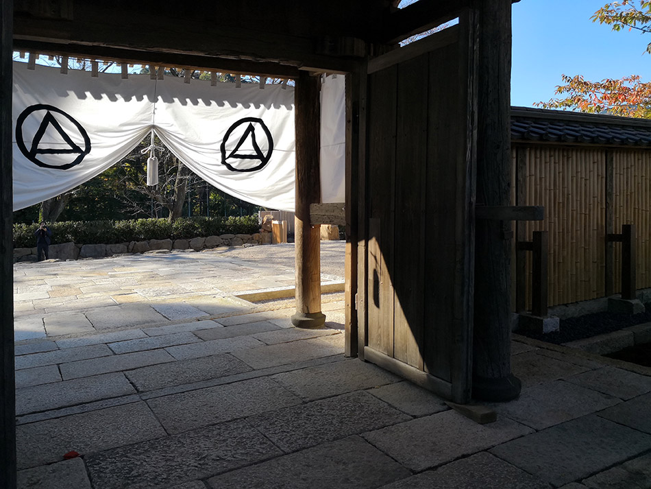 日本表演藝術(shù)的起源可以追溯到古代的“ama-no-iwato”傳說(shuō)。根據(jù)這個(gè)傳說(shuō),黎明女神為了引誘躲在山洞里的太陽(yáng)女神出現(xiàn)而跳舞。舞臺(tái)的設(shè)計(jì)基于一個(gè)能樂(lè)舞臺(tái)的尺寸。原本作為江戶城堡墻壁的大石頭構(gòu)成了每個(gè)舞臺(tái)的四角。春分和秋分時(shí)期,當(dāng)太陽(yáng)從相模灣升起時(shí),石橋路的軸線與太陽(yáng)的軸線正好對(duì)齊。