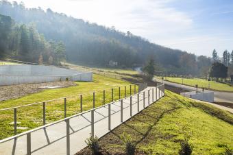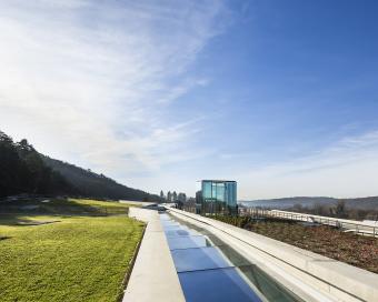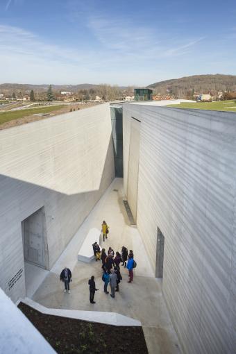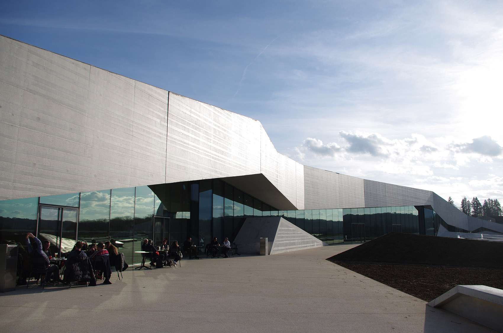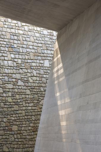 Lascaux IV 被創(chuàng)造城為風景中的裂隙。屋頂設有一條柔和的斷線,反映了山坡起伏的形狀。它的長度,虛實,光影,保持著與外部不可分割的關系,同時向游客暗示著博物館內部的構成。Lascaux IV 博物館被建造在在未受影響的森林和農田之間的過渡區(qū)。通過融入這兩個截然不同的景觀的邊界,建筑在為這個場地的景觀做出了很大貢獻,促進兩種景觀之間的交流。建筑物的形式和重要性得到了清晰的表達。這座建筑反映了對原始洞穴和環(huán)境的好奇心,也可以作為該地區(qū)對遺產態(tài)度的杰出代表。