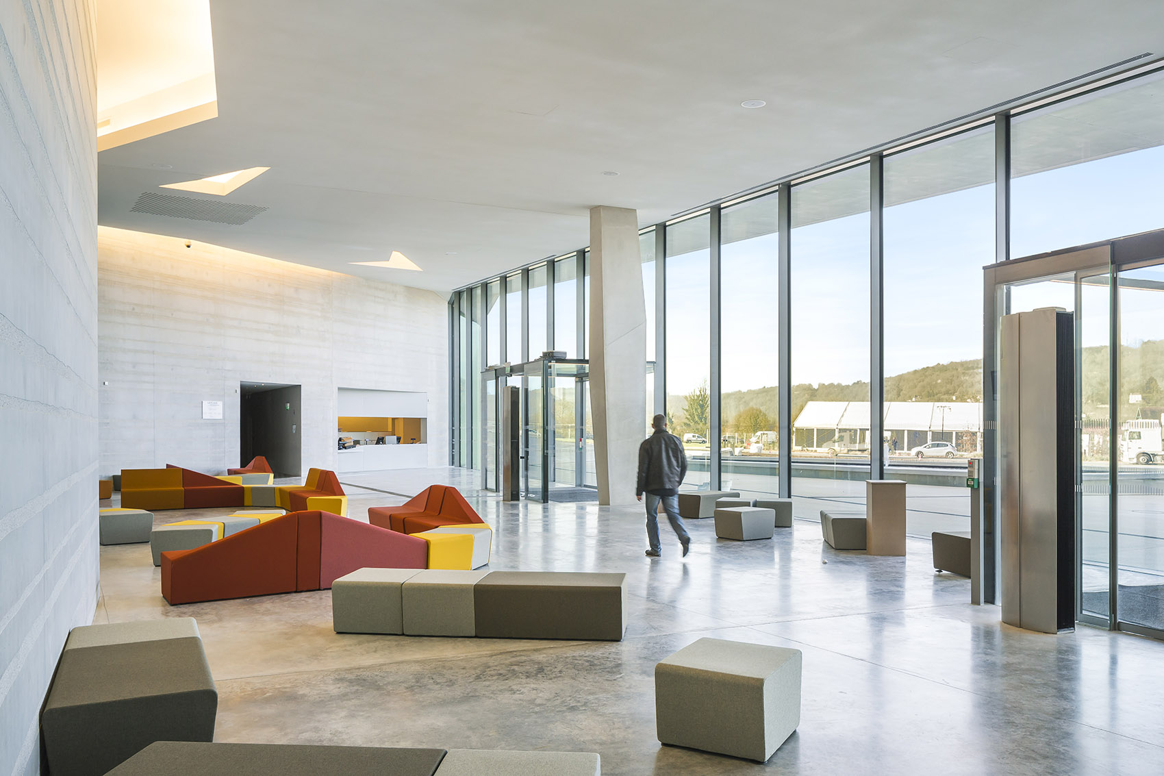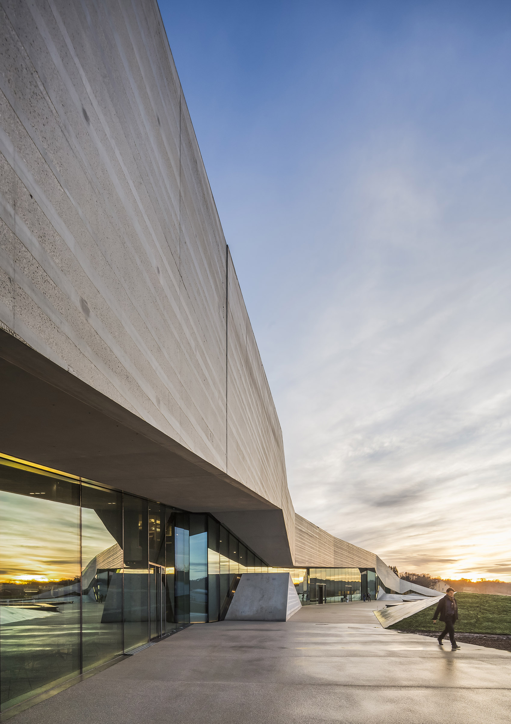 墻壁,屋頂,外墻,以及內部和外部地板均采用混凝土制造,使建筑物成為一個整體。原始的,未打磨材料的處理方式喚起了游客對礦物世界,山脈的巖石和洞穴的感受。此外,建筑中的玻璃,定義了空間的外觀和背景。透明的立面在外部和內部之間形成直接的視覺連接,邀請公眾的參與。玻璃和混凝土之間的相互作用產生了一系列對比效果,虛實,光影,未完成的,復雜的,粗糙的,光滑的。他們之間的平衡,給予設施一種現代感。