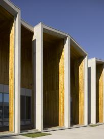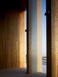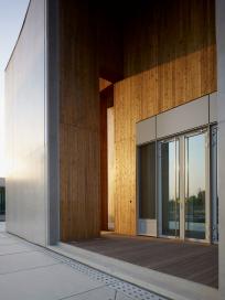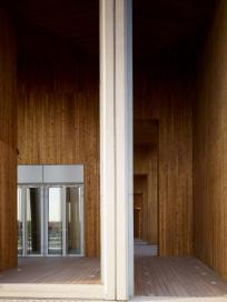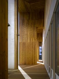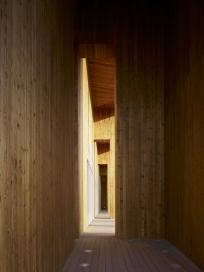 該建筑為鋼筋砼結(jié)構(gòu),為了表達(dá)建筑幾何的邏輯關(guān)系,屋頂、切割面為清水砼,切口內(nèi)為木質(zhì)外墻。