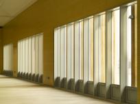 措施3:在建筑外側(cè)設(shè)置了一層外廊,為外側(cè)的大窗戶提供了遮陽(yáng),同時(shí)也為店鋪和學(xué)生活動(dòng)提供了一個(gè)半室外空間,外廊的另一個(gè)重要的功能是為大跨度的梁提供了支撐。另外為了豐富外立面,將外廊處理成在軸網(wǎng)旋轉(zhuǎn)后將外側(cè)單元進(jìn)行切割的形式。