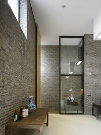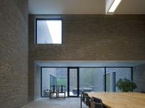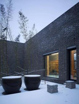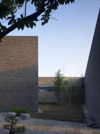 另外,體量中部設(shè)置了一個(gè)與外部呈30度的南北向正方體,體形略高于周邊,在強(qiáng)化主要空間的同時(shí)亦帶來(lái)了空間上和流線(xiàn)上的變化。圭園以磚為主要建筑材料,在框架結(jié)構(gòu)的內(nèi)外均以過(guò)火磚砌筑(中間填充砌塊及保溫材料),力圖營(yíng)造出自然質(zhì)樸的感受,清晰真實(shí)的建筑表達(dá)。