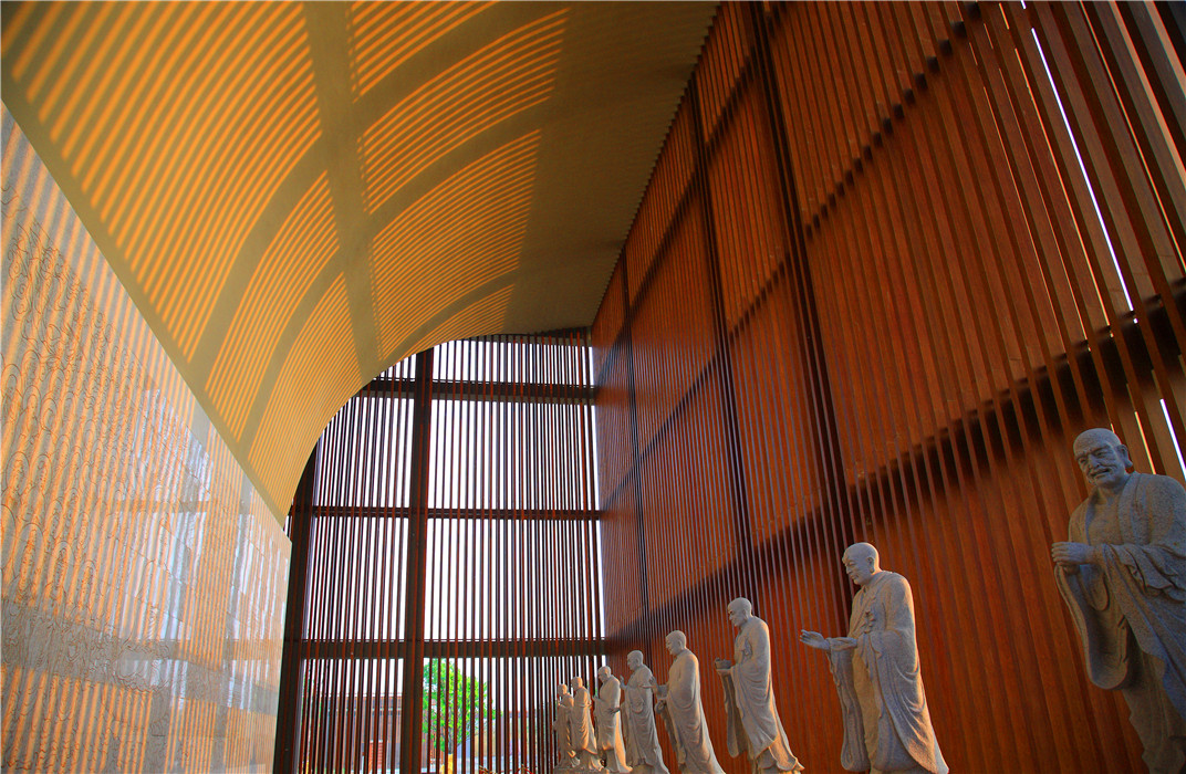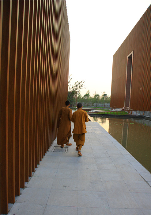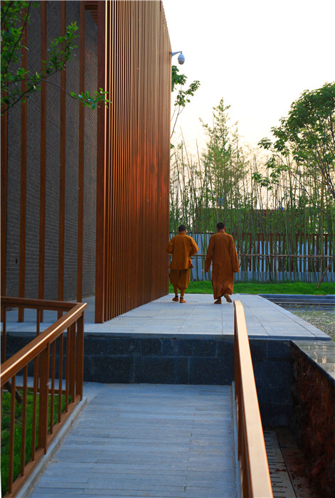 本建筑群用當(dāng)代建筑和景觀設(shè)計手法,體現(xiàn)禪學(xué)之空靈無我的意境;在禪意的表達與建筑的本源目的之間,尋找破解佛教寺院當(dāng)代表達之謎;同時,探索讓出世的禪宗走向平民大眾的空間語言。是實驗,就絕非完美,更有待更深入的批判和探討。但值得慶幸的是,其千年不變的規(guī)制從此有了突破。