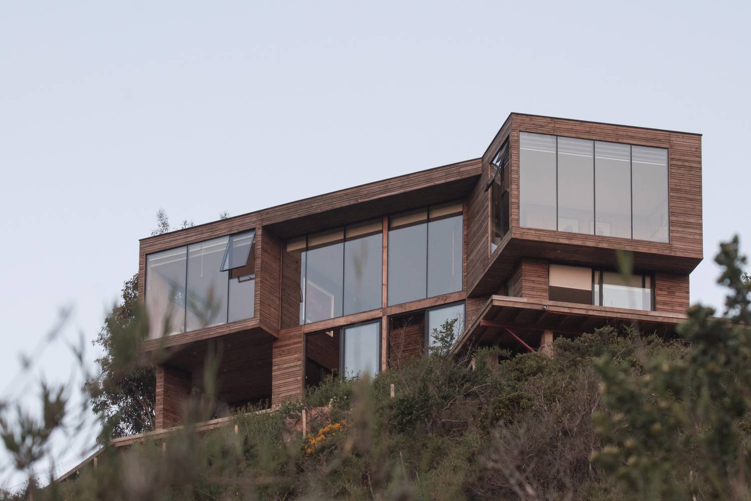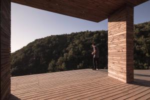 出于最大化視野,自然光照和減免氣候因素目的,建筑的體積避免了方正的外形,向外延伸的露臺由水泥柱支撐,向遠方眺望,自然保護區(qū)和海岸線永不褪色美景盡收眼底。