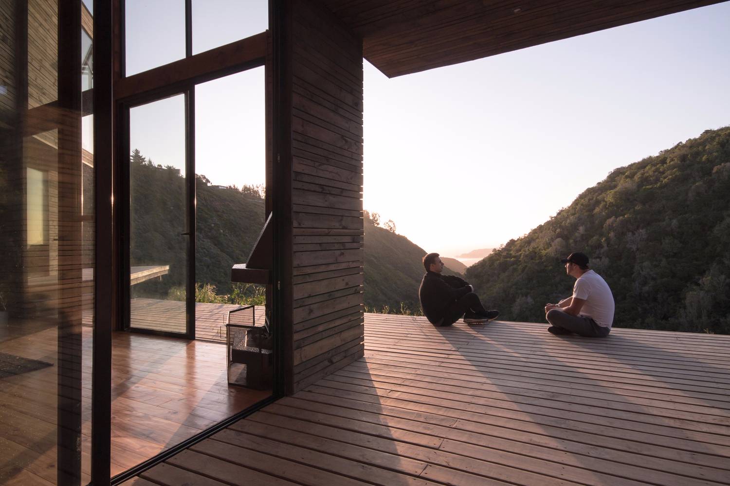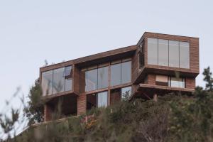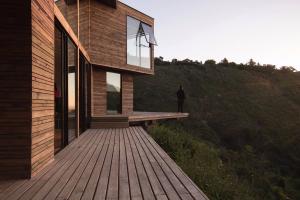 海岸邊植被叢生,潺潺流水環(huán)繞著古老的桉樹林,美麗的自然景觀仿佛在訴說著古老的故事,這里的美景促使我們完成了這座圣地亞哥市160千米之外的藤昆之屋。
