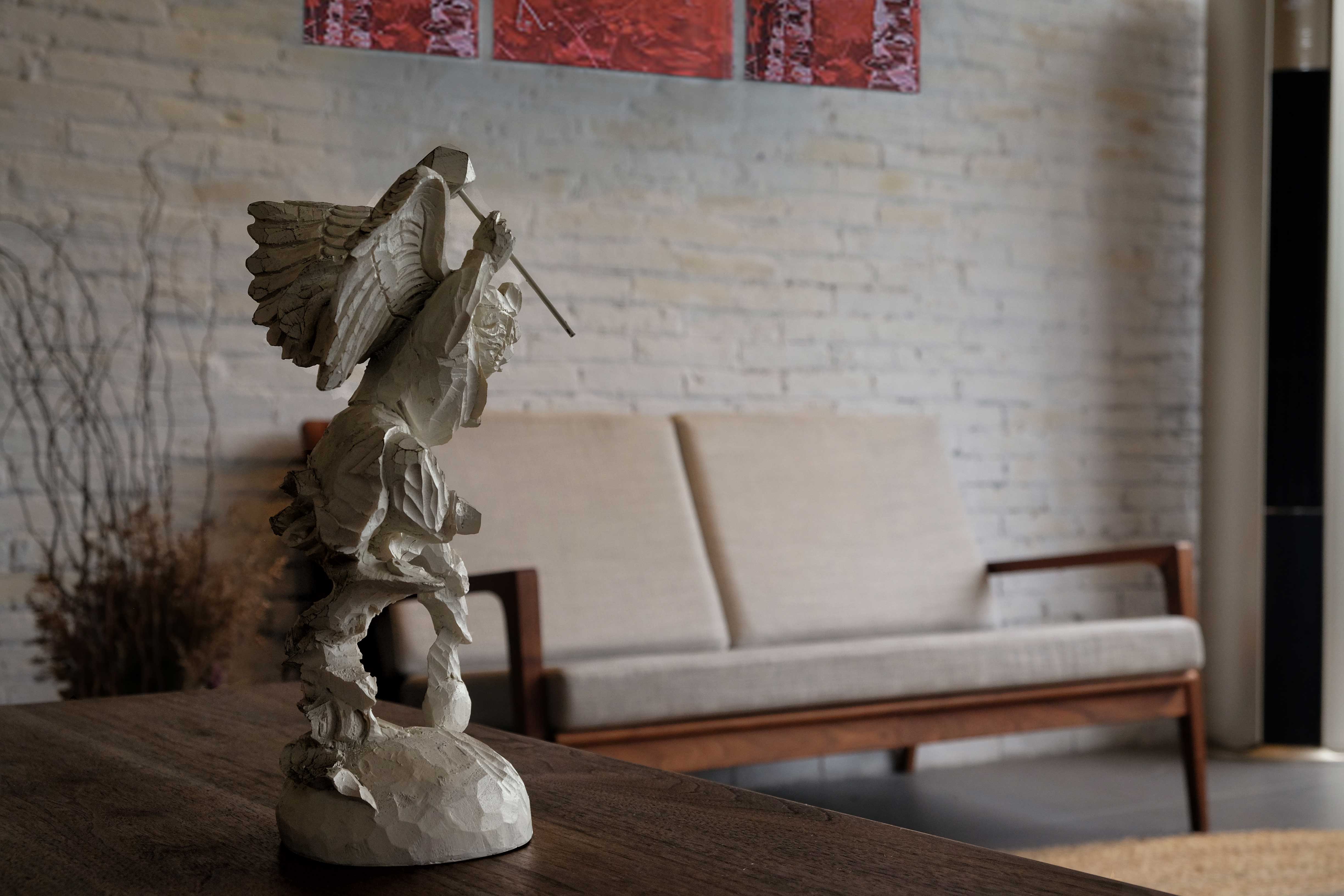 中庭空間作為整個平面布局的核心部分,完成了由原建筑室內(nèi)空間變成新建筑的室外空間的屬性轉(zhuǎn)換。其南側(cè)的原有墻體和老門都得以保留,彰顯對原有記憶的尊重和致敬;作為對比和呼應(yīng),我們在老門的一側(cè)我們設(shè)置了一扇高5米寬1.2米的銅制新門,通過極大的比例差異增強儀式感(這種做法在歐洲的許多當(dāng)代教堂空間設(shè)計中屢見不鮮);