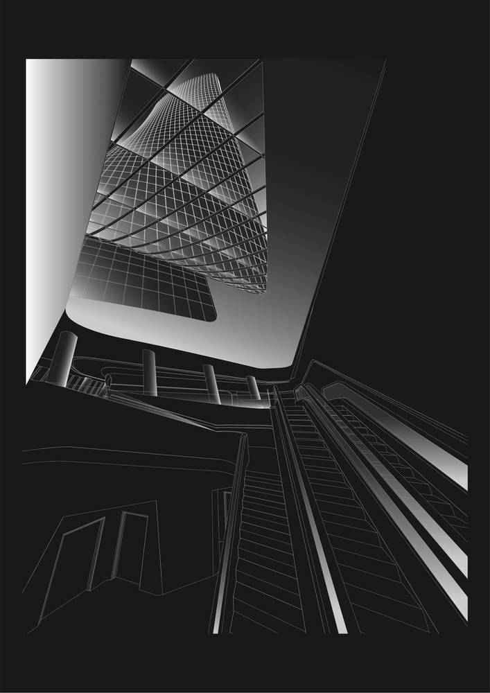 周邊傾斜的圓柱可以沿著大樓扭曲的幾何形狀來映射出其外部立面單元的傾斜排列。這些立柱也能使辦公大樓內(nèi)部的辦公空間最大化。