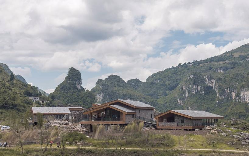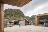 安龍戶外體育公園游客服務(wù)中心是在大環(huán)境、大自然景觀條件下的“小”建筑。項(xiàng)目位于貴州省黔西南州安龍縣篤山鎮(zhèn)梨樹村的“龍灣”山谷中。與一般的貫通的峽谷不同,這是一個(gè)口袋形的山谷,建筑所在的地點(diǎn)是口袋的底部,也就是山谷結(jié)束的地方。山谷的形成來源于一條河流和兩個(gè)天坑,河流到這里突然順著天坑流入地下,成為地下河,日久天長,這里就形成了一個(gè)山谷。山谷四周群山環(huán)繞,其中一側(cè)較為平緩,另一側(cè)則是百米的垂直巖壁。這里的地質(zhì)條件正如貴州大部分地區(qū),是喀斯特地形,山勢(shì)奇峻,怪石嶙峋;同時(shí),地上河、天坑、谷底平坦的用地等又為此處平添了許多與周邊地區(qū)不同的風(fēng)景,也為修建戶外體育運(yùn)動(dòng)公園提供了得天獨(dú)厚的自然條件。