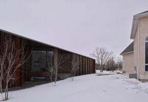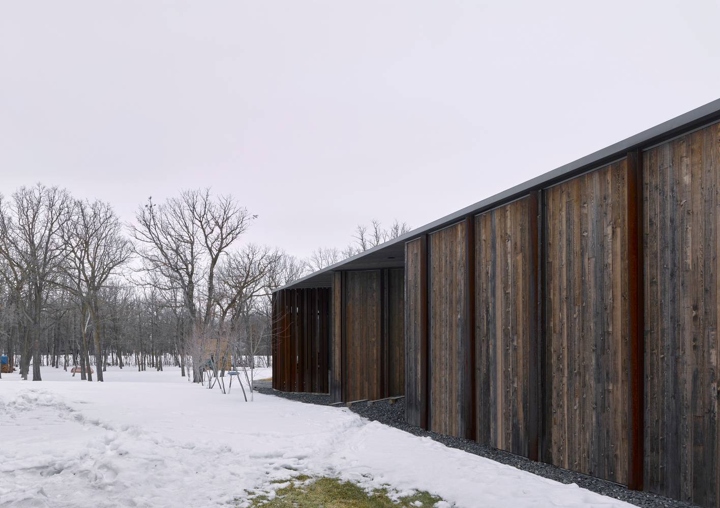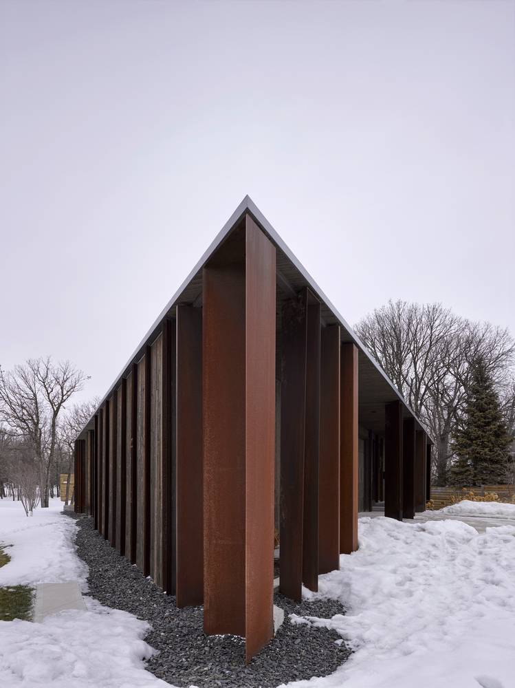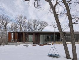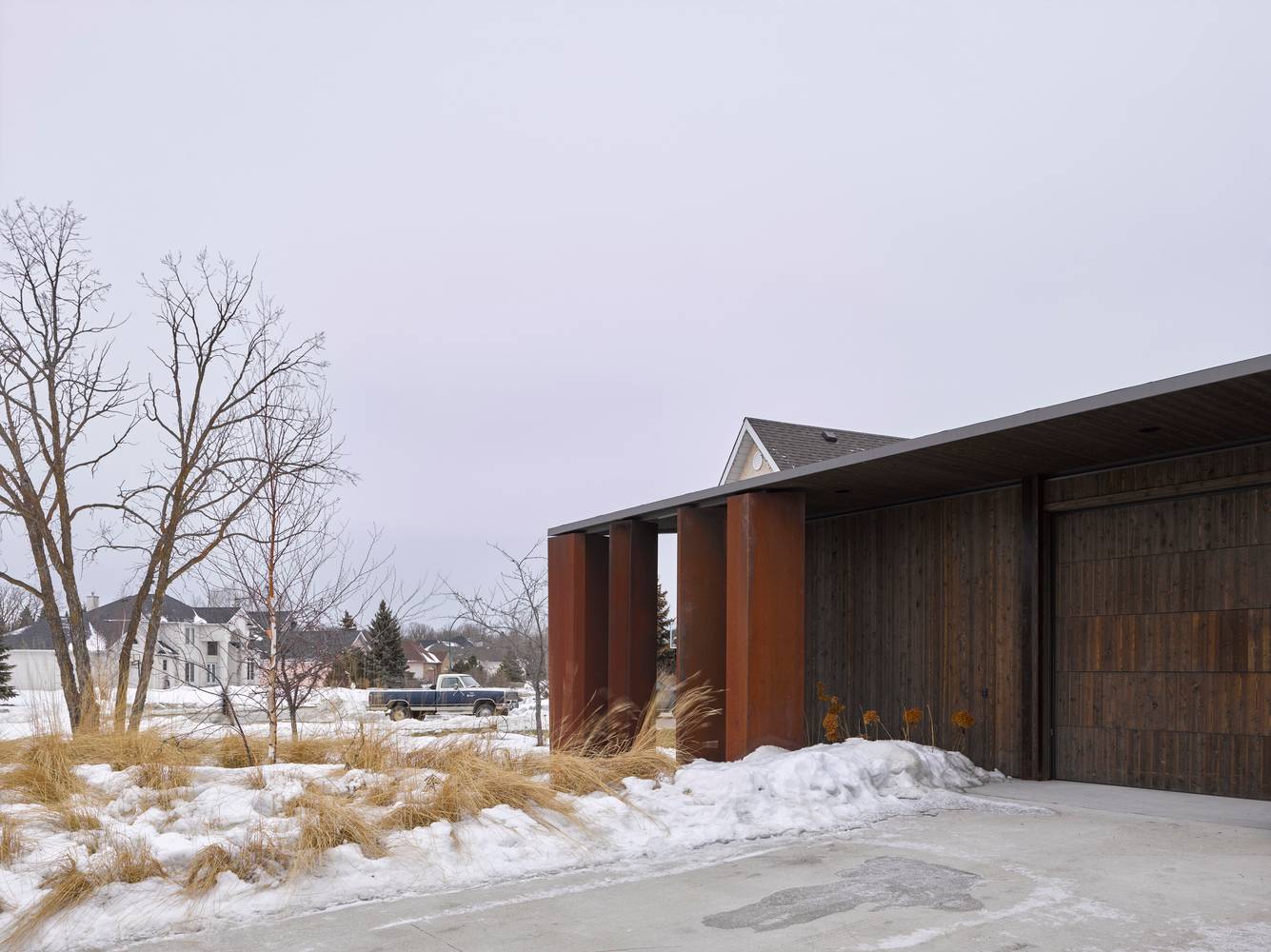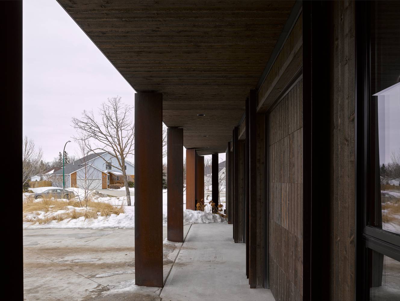 “平行四邊形之家”是一個四口之家的一處寬敞的小房子,在溫尼伯背部的東圣保羅郊區(qū)。場地在一處安靜的海灣里,周圍都是典型的郊區(qū)、灰泥外墻的住宅,這處建筑以一副樸素的面孔朝向街道。在滿是樹的后院里,有大面積的落地玻璃窗面向寬闊的庭院空間。