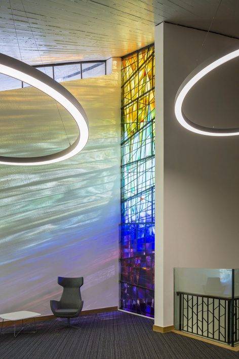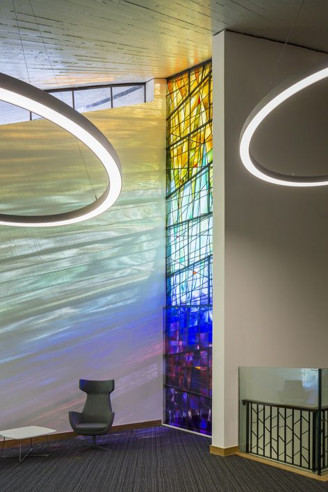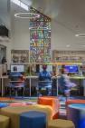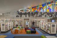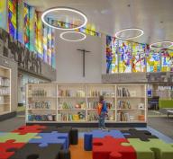 此次重修工程包含建筑內(nèi)現(xiàn)有樓層的所有拆除工程,新員工區(qū)域的規(guī)劃,公共衛(wèi)生間,儲(chǔ)藏間,公共休息廳,會(huì)客廳以及兩層公共閱覽區(qū)域。其中一處閱覽區(qū)位于原建筑的外延平臺(tái)上。該項(xiàng)目保留了原有教堂十字架,和教堂的玻璃花窗。此外,該圖書(shū)館還設(shè)置的全新的家具和書(shū)架,以及用于圖書(shū)館日常運(yùn)營(yíng)的各種智能設(shè)備。這些新加入的功能性設(shè)備讓圖書(shū)館具備更加靈活的空間組織方式,滿足圖書(shū)館的日常所需,同時(shí)也促進(jìn)了圖書(shū)館的運(yùn)行,存儲(chǔ),學(xué)習(xí),表演,信息資訊和服務(wù)性需求的現(xiàn)代化發(fā)展。建筑內(nèi)部的可拆卸靈活空間配置,為其未來(lái)的發(fā)展提供了便利。該建筑的改造賦予其自身以新的生命,在此后的歲月里,它將持續(xù)作為公共職能建筑為社會(huì)大眾帶去優(yōu)秀的服務(wù)功能。