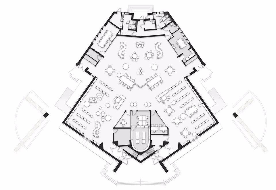 開(kāi)放性的空間規(guī)劃,增加了未來(lái)內(nèi)部空間發(fā)展的靈活性。這一開(kāi)放性的設(shè)計(jì)使得來(lái)訪者獲得自助式服務(wù),節(jié)省了管理人員的調(diào)度,也讓空間使用流線更加清晰合理,易于使用。室內(nèi)多設(shè)多用途區(qū)域以實(shí)現(xiàn)空間的多功能性??勺杂梢苿?dòng)擺設(shè)的家具,為空間展覽,講演,工作坊,會(huì)議及其他活動(dòng)提供更多空間。設(shè)計(jì)師注重空間的第一印象,該空間設(shè)計(jì)旨在觸發(fā)來(lái)訪者的第一空間感受,并賦予他們探索空間的熱情。