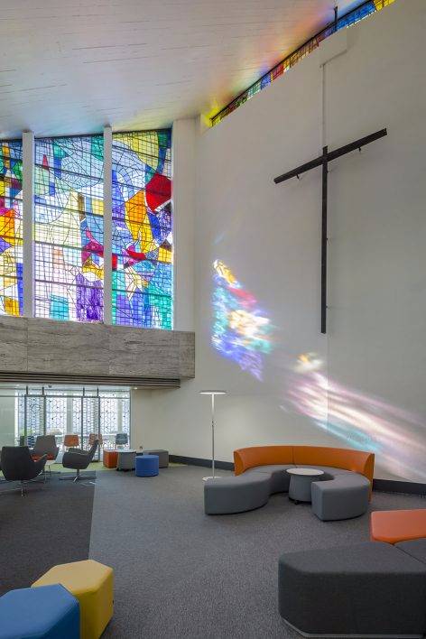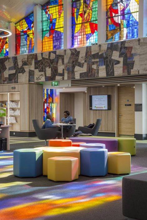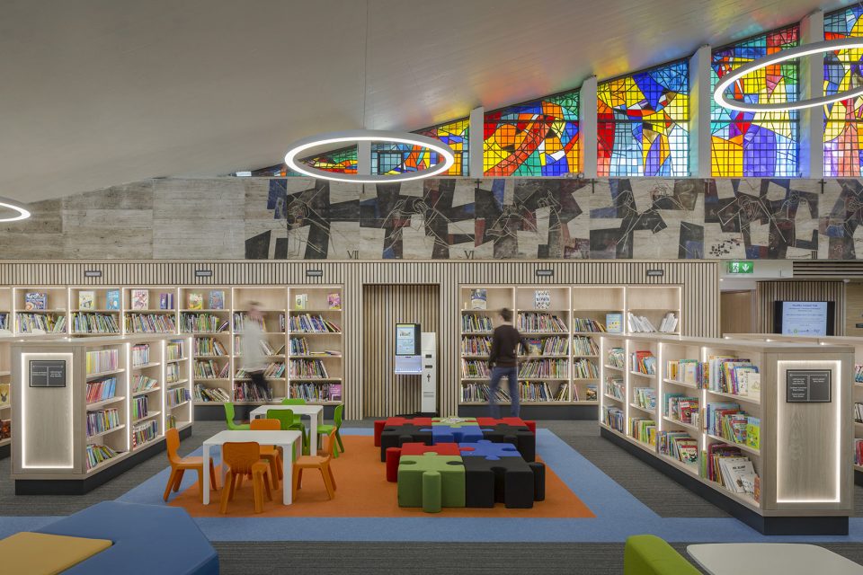 位于Athy小鎮(zhèn)的Dominican教堂被改造成市政圖書(shū)館。原建堂建筑擁有令人驚嘆的曲面屋頂,和色彩斑斕的玻璃立面。全新的圖書(shū)館建筑將保留這些原建筑的特色外貌,最大限度保留其內(nèi)部光照強(qiáng)度,同時(shí)將室內(nèi)環(huán)境升級(jí)改造成現(xiàn)代化的圖書(shū)館。