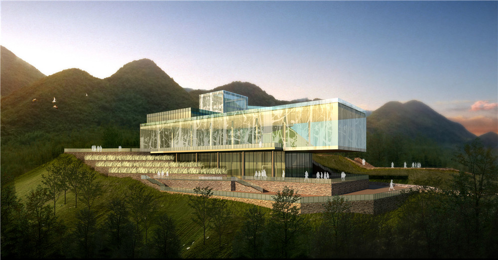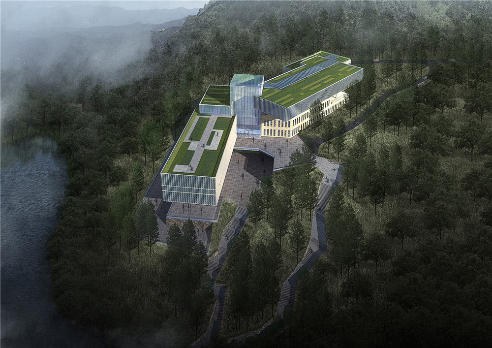 貴州省六盤水市書畫院項目所在位置位于山脈的末峰,周圍谷地環(huán)繞,要脈脊向東與濕地公園形成軸線對景,并與北側(cè)山脈隔谷相望。通過對地形地勢的分析,根據(jù)可建設(shè)區(qū)域進(jìn)行對山體的切入式建設(shè);在依山傍勢的同時,可以以圍合區(qū)域為中心用院落的空間方式對不同的建筑體塊進(jìn)行有效組織,豐富了室內(nèi)外空間序列??紤]到建設(shè)場地地理位置,環(huán)境功能的特殊性在設(shè)計中,必須兼顧自身特點的同時又要與周邊環(huán)境相協(xié)調(diào),解決好自身交通的關(guān)系,使之較好的融入周圍環(huán)境。