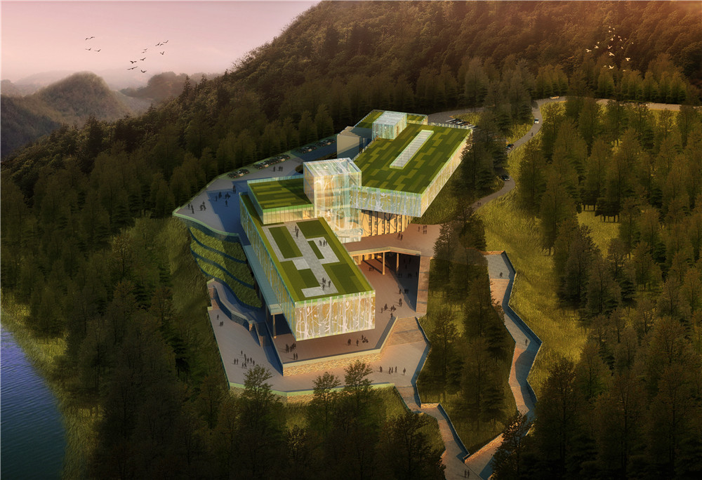 注重建筑與環(huán)境的協(xié)調(diào),建筑與場地地形緊密結(jié)合并最大限度減少土石方工程量。建筑外觀造型與周邊濕地公園的優(yōu)美環(huán)境相結(jié)合,打造城市地標(biāo)性建筑景觀。