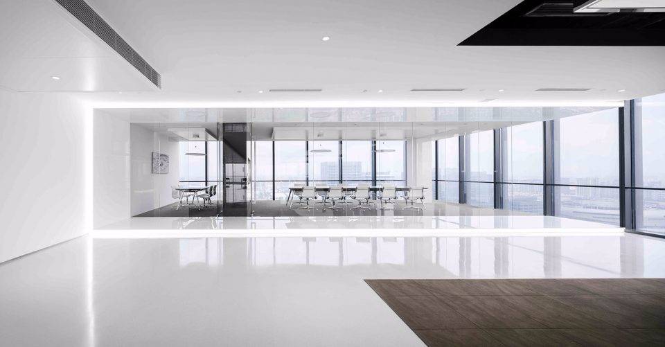 ▼20層辦公空間前臺(tái),延續(xù)極簡的設(shè)計(jì)風(fēng)格