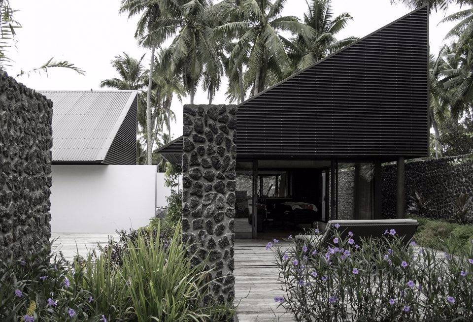 該項(xiàng)目旨在為斐濟(jì)沃莫島度假區(qū)打造一個(gè)全新的Spa中心。項(xiàng)目場(chǎng)地位于小島中央的天然花園,四周環(huán)繞著茂密的熱帶大樹,岸邊則種滿椰樹,景色十分壯麗。設(shè)計(jì)團(tuán)隊(duì)為該項(xiàng)目打造了新的火山巖墻壁、水景花園、植物園以及圍繞在庭院平臺(tái)四周的楔形屋頂。