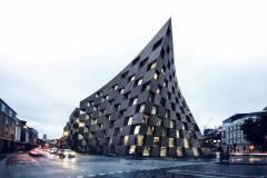 西班牙事務(wù)所AQSO arquitectos為這座綜合型建筑設(shè)計(jì)的功能有酒店、電影院和商業(yè)零售,嘗試以另一種現(xiàn)代化的語(yǔ)言對(duì)場(chǎng)地條件做出正式回應(yīng)。整座建筑體量如同一塊帶有圖騰意義的巨石,將前方道路一分為二。而建筑本身則化身為一個(gè)靈活的元素與現(xiàn)有街道形成的角度相契合,同時(shí)尊重公共區(qū)域的行人流線。