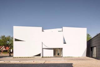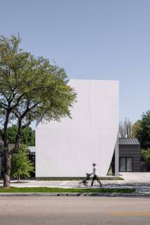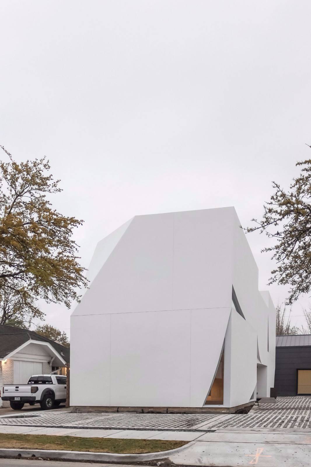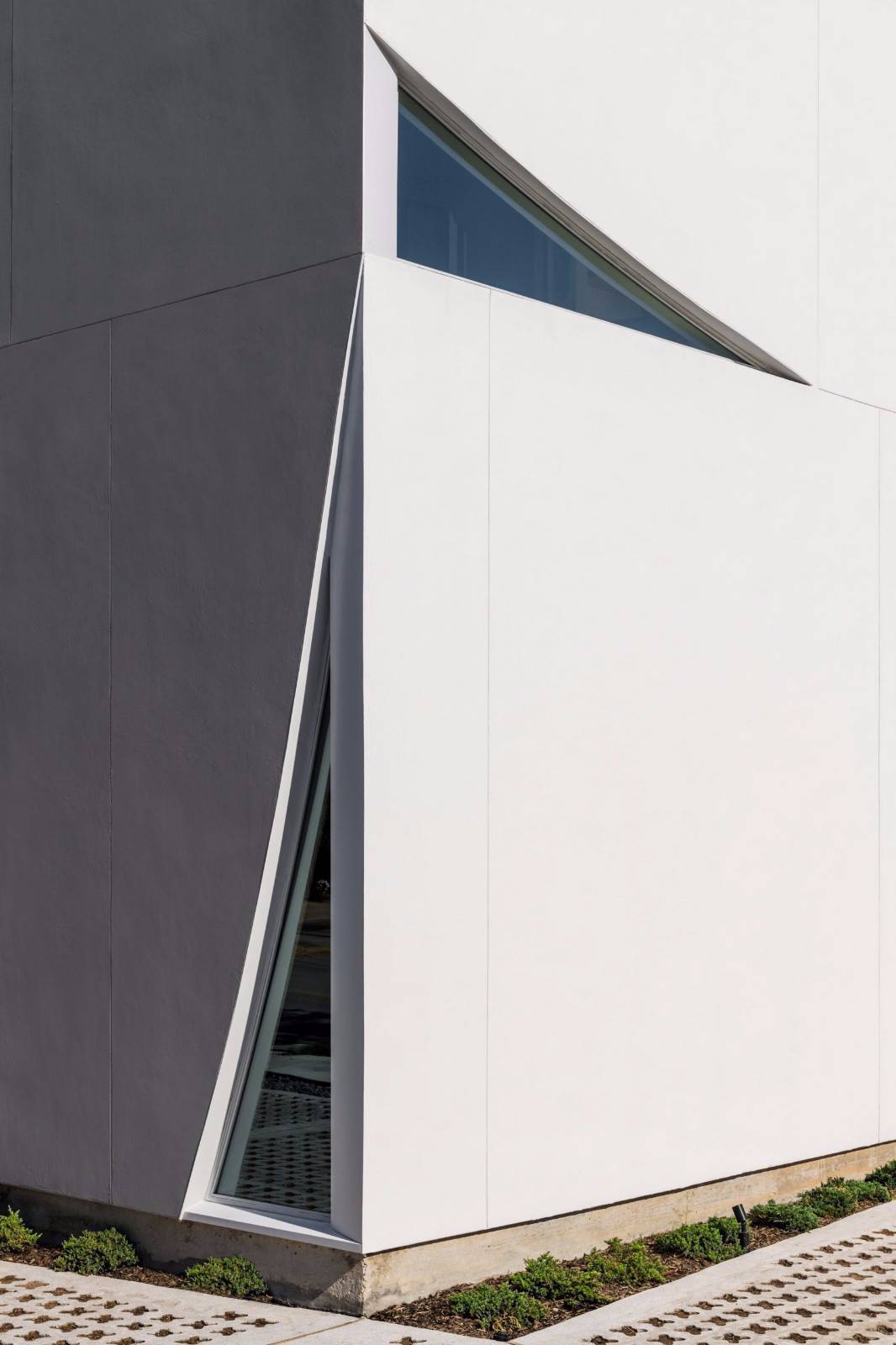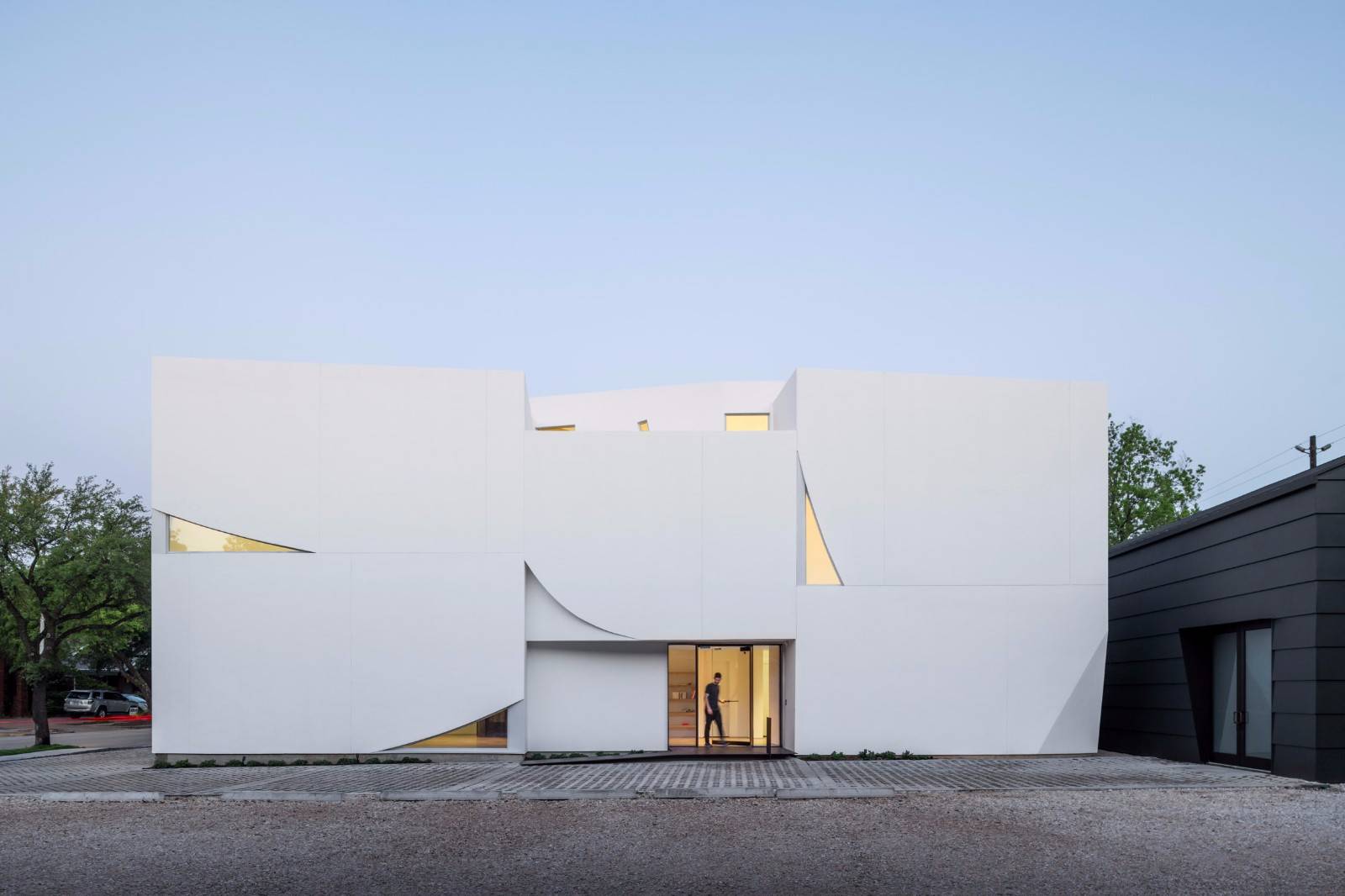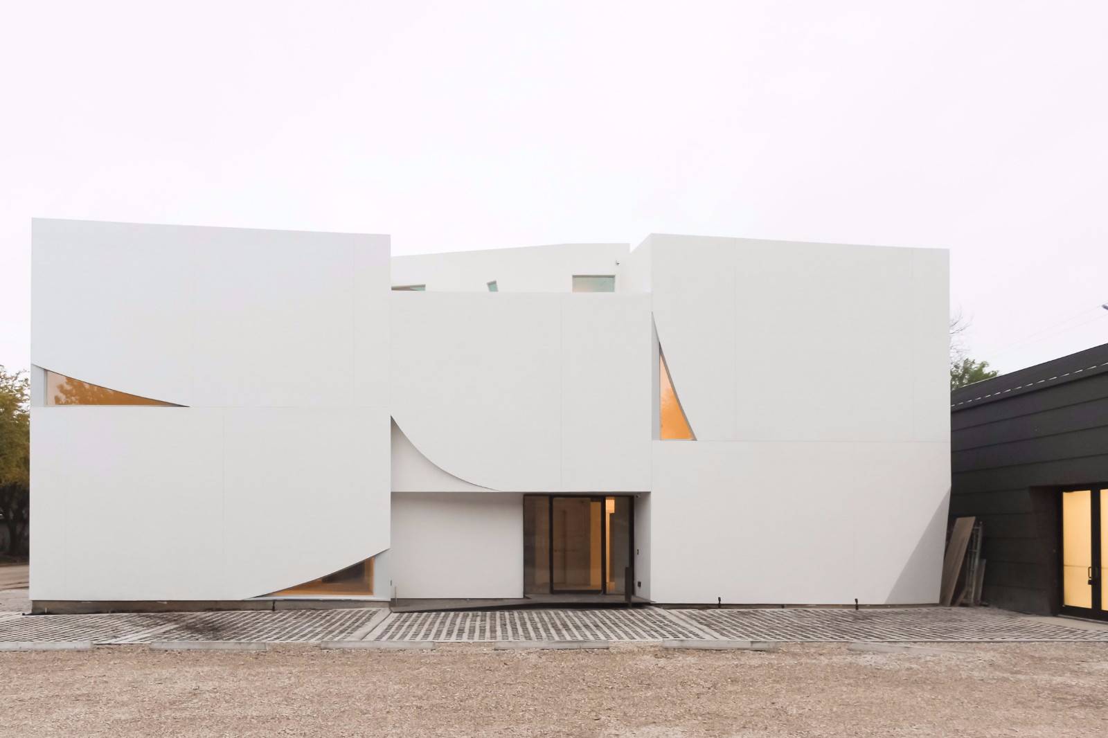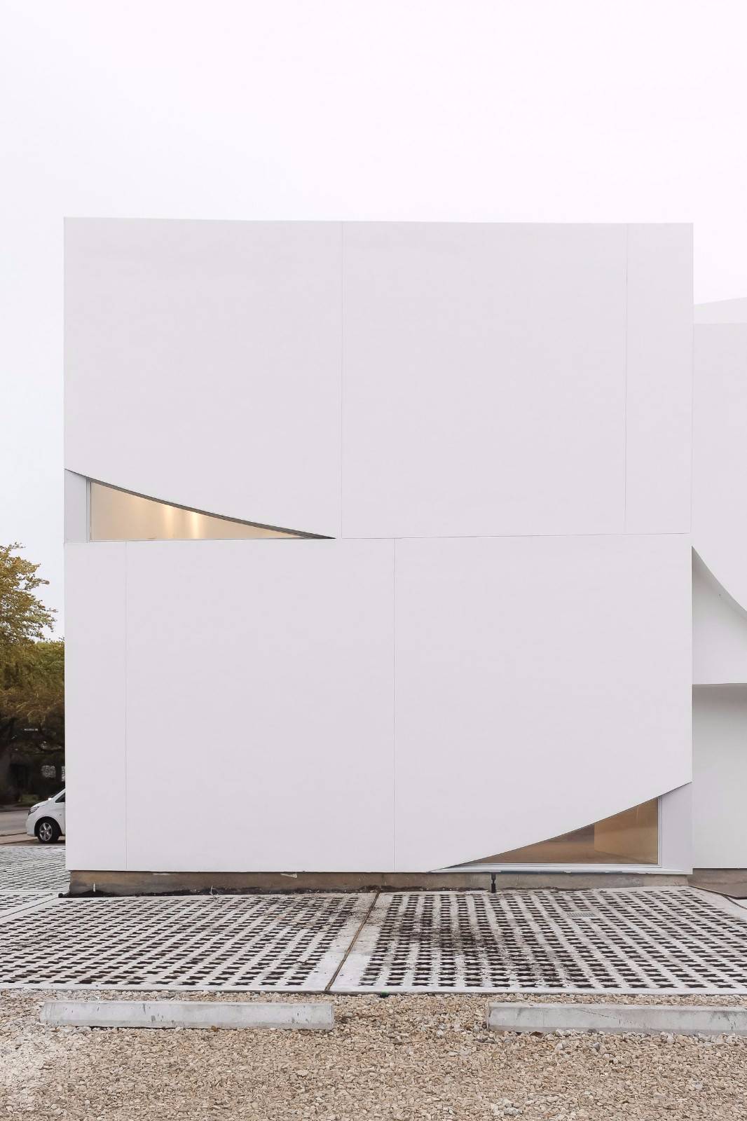 新建筑的平面呈矩形,外立面造型雕塑感明顯,由不同形狀的白色拉毛粉刷板制成。整座建筑絕大部分都是不透明的,僅在體量拐角處做了幾個(gè)折角式的切口,將少量的日光帶入室內(nèi)。在外觀設(shè)計(jì)方面,該團(tuán)隊(duì)不僅試圖保護(hù)藝術(shù)畫廊免受德克薩斯酷烈的陽光侵襲,還要?jiǎng)?chuàng)造一個(gè)看起來優(yōu)雅精致的建筑。