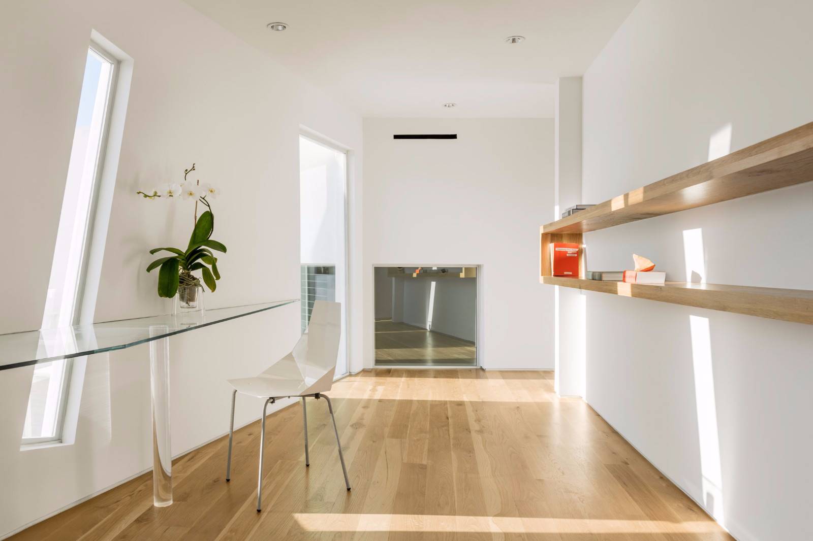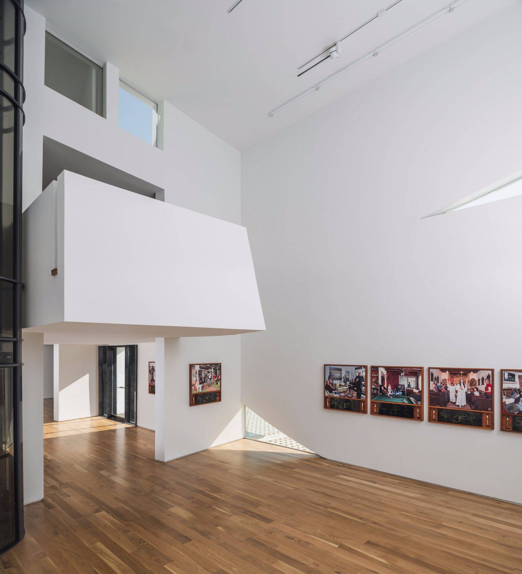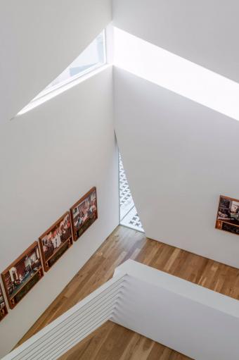 該建筑的結(jié)構(gòu)框架采用厚木搭建,建造方式類似于荷蘭谷倉的結(jié)構(gòu)框架。閉孔絕緣墻有助于阻擋熱量,這種被動(dòng)式的制冷策略通常會(huì)與高效的空調(diào)系統(tǒng)協(xié)同工作。游客從首層進(jìn)入建筑,然后到達(dá)中央的“起居空間”,旁邊是畫廊。白色墻壁和木質(zhì)地板為攝影作品、繪畫、雕塑和其他類型藝術(shù)品提供寧靜的背景環(huán)境。