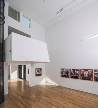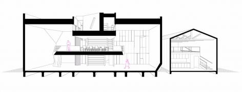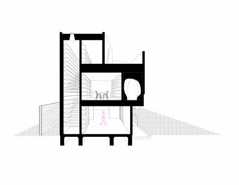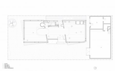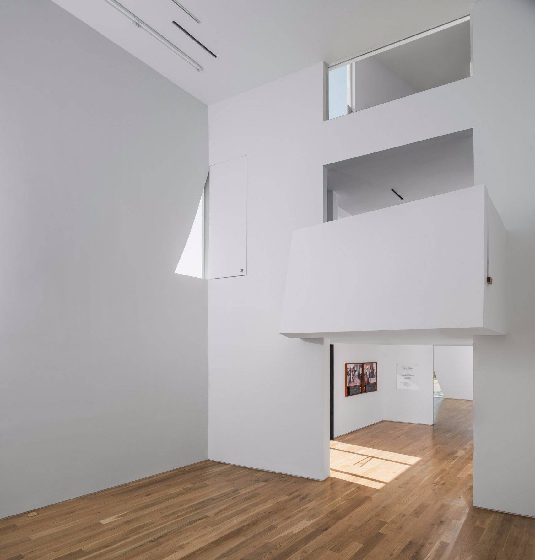“前部的展覽空間面朝街道,通過自然采光進(jìn)行照明,更多地用來舉辦傳統(tǒng)風(fēng)格的展覽,”事務(wù)所解釋道?!昂蟛康恼褂[空間自然采光較少,因此更多地用來舉辦新媒體或演示作品等對燈光控制有需求的展覽?!?/p>
