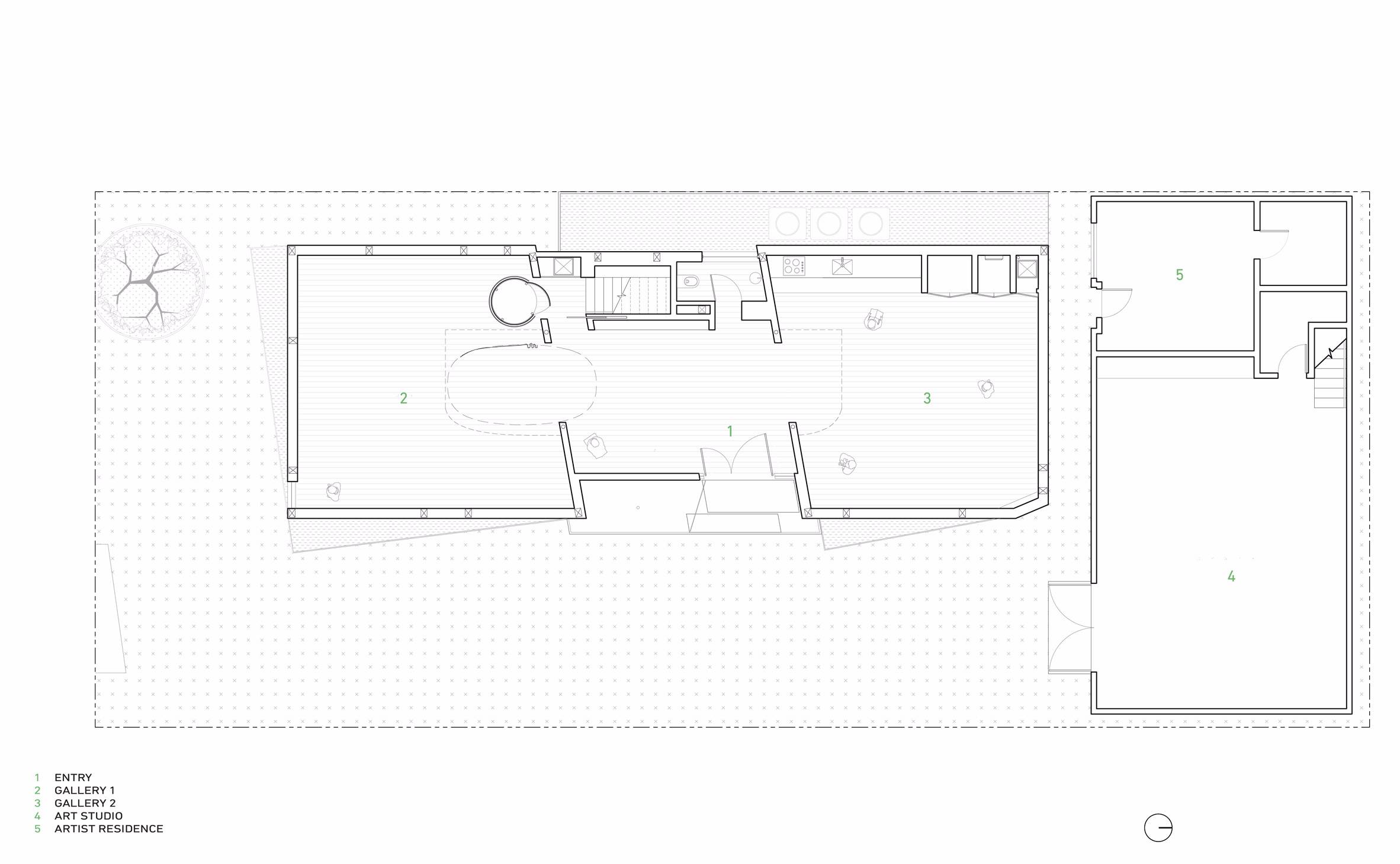主建筑旁邊是現(xiàn)有的攝影工作室,建筑事務(wù)所為其重新設(shè)計(jì)了灰色水泥板的側(cè)立面造型。工作室為藝術(shù)訓(xùn)練提供了機(jī)會(huì),也為來訪的藝術(shù)家和學(xué)者提供了工作空間。