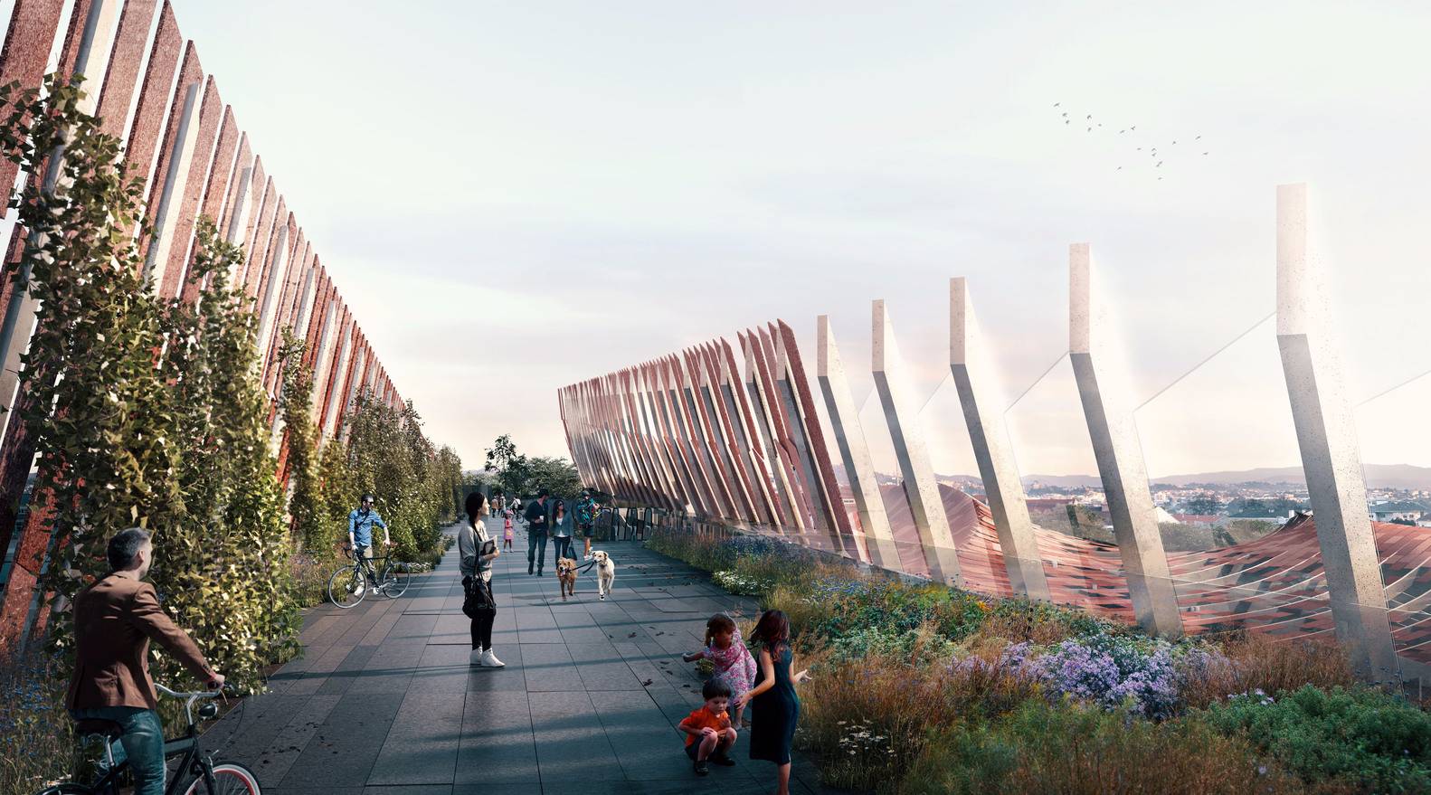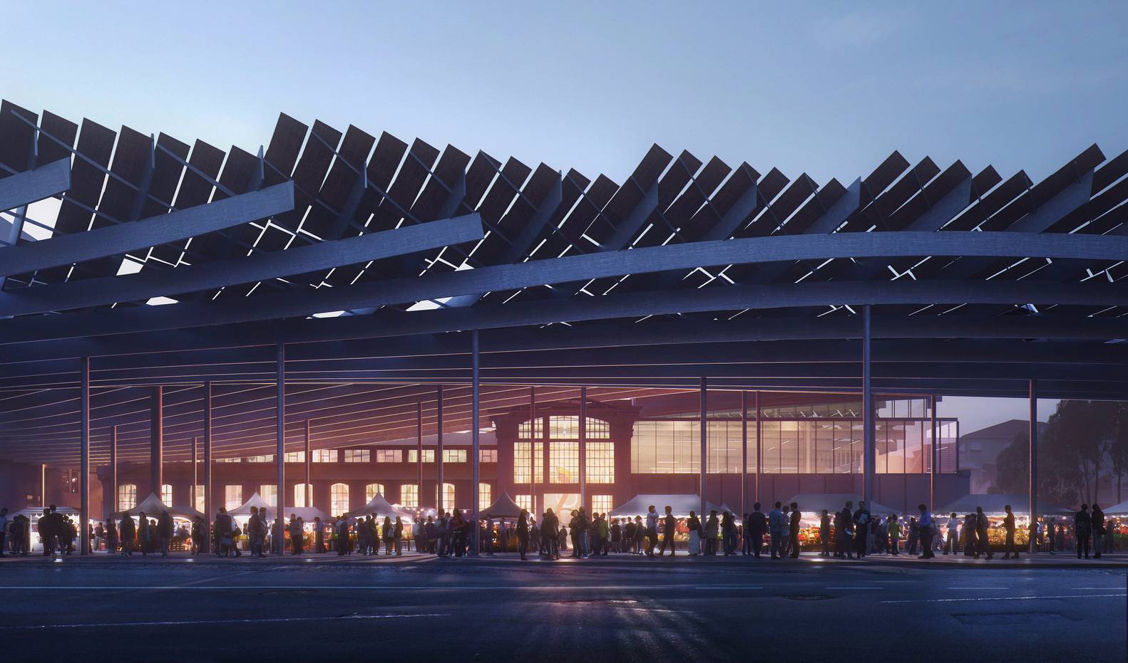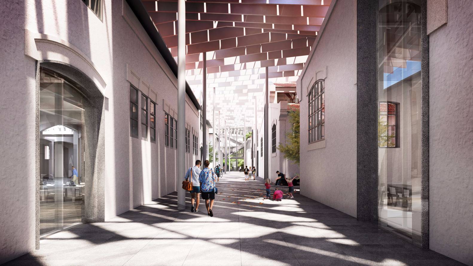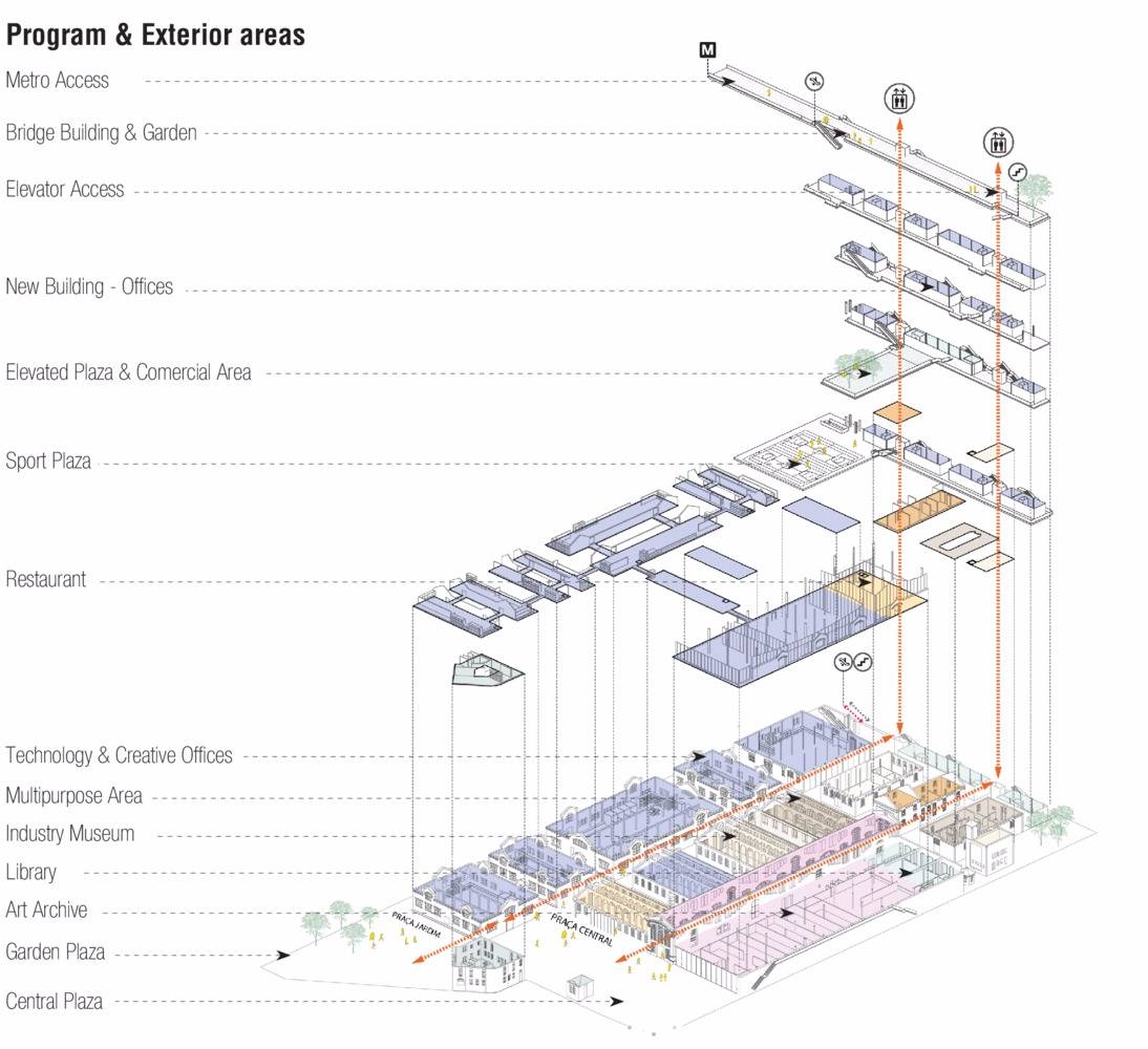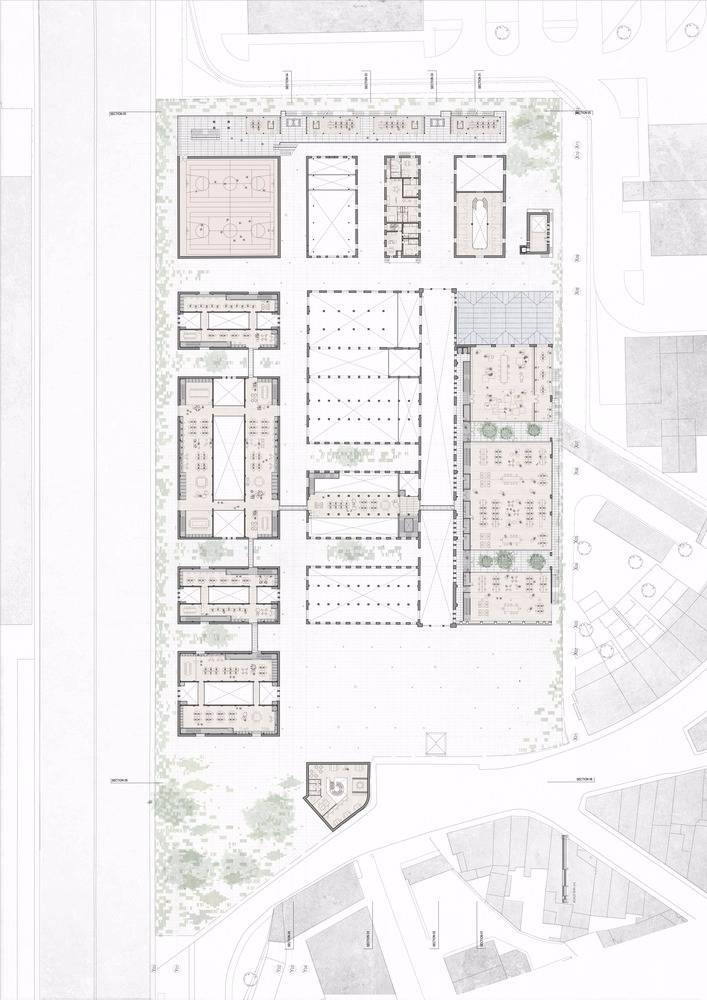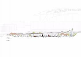 該設(shè)計(jì)試圖通過(guò)介入措施,例如連接該地點(diǎn)與附近地鐵站的橋梁,將這座曾經(jīng)重要的建筑與市中心重新連接起來(lái)。與此同時(shí),覆蓋整個(gè)場(chǎng)地的本土化屋頂將新舊結(jié)合起來(lái),屋頂下包含了博物館,圖書(shū)館,表演空間,藝術(shù)檔案館和創(chuàng)意實(shí)驗(yàn)室。
