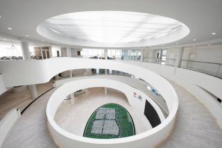 展示中心使設(shè)計意念回歸到生物醫(yī)藥的原點,也使建筑回歸人性魅力,獲得向上延展的生命動勢。無窮變異的曲線之美,讓建筑看起來仿佛沒有天花板,一直蔓延到云端,也詮釋了設(shè)計師在建筑燦若星河的創(chuàng)造中,永遠向前的初心。