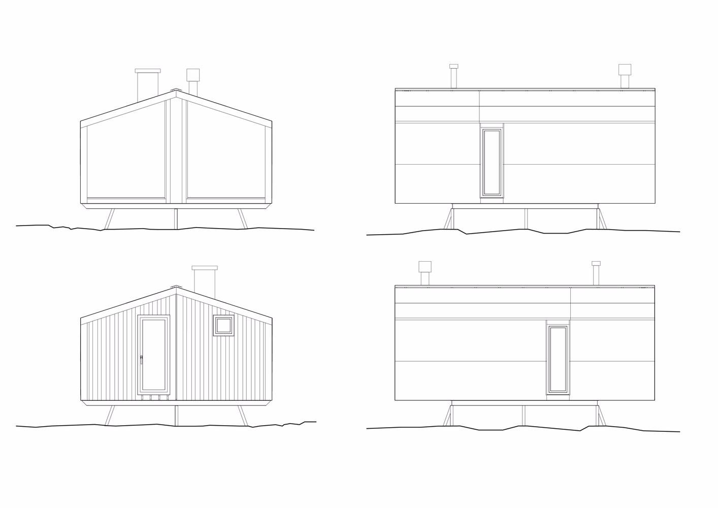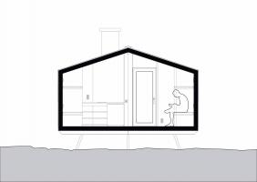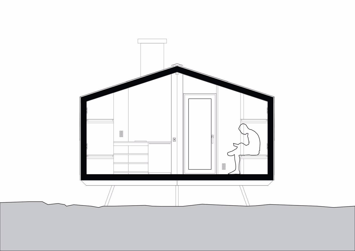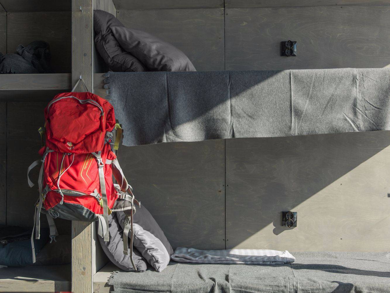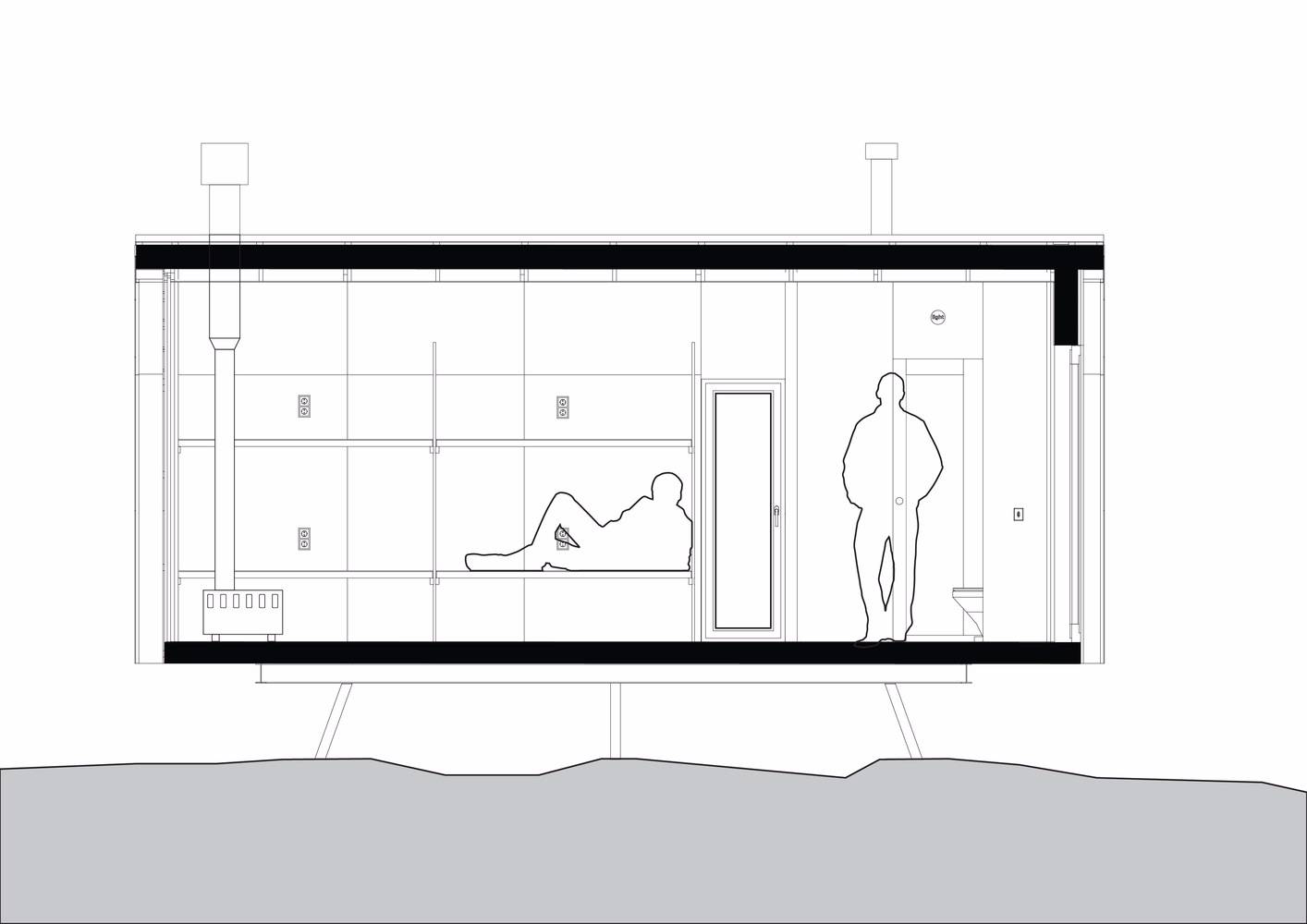 內(nèi)部空間可以同時為8人使用。架床環(huán)繞在中央房間周圍,中間是一張大家可以圍坐在一起的桌子。所有的架床都可以被拆下來,床下面的空間為儲物而設計。大廳可以用來存放外衣。室內(nèi)的色調(diào)盡可能地簡約,讓人們把注意力都留給窗外的山景。