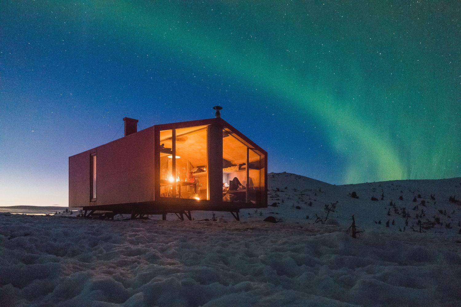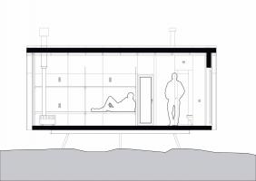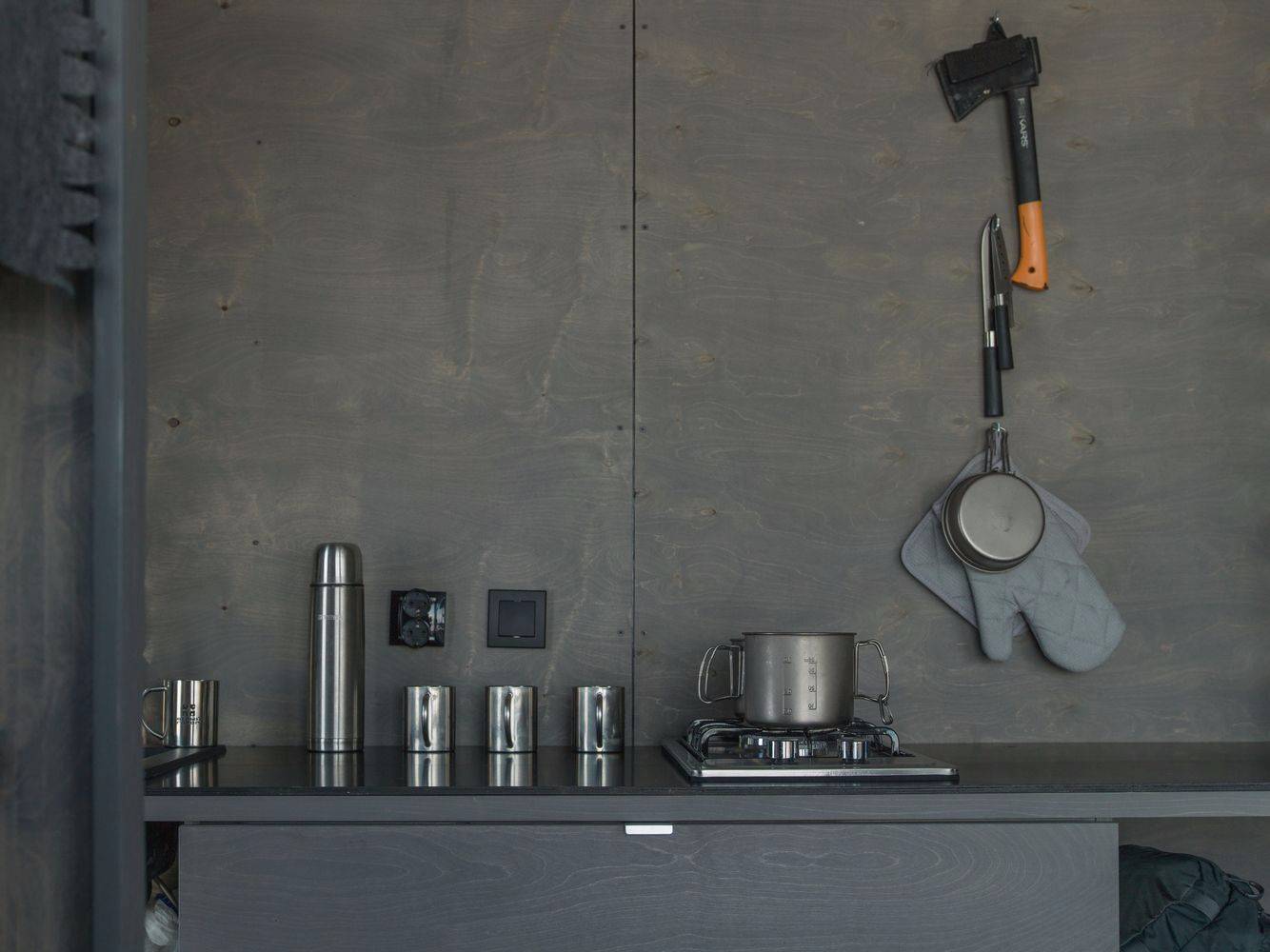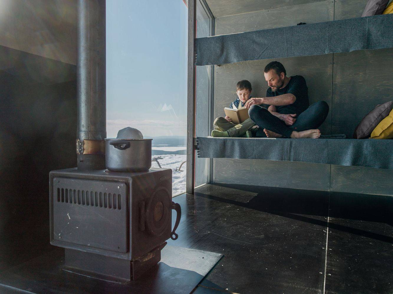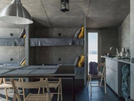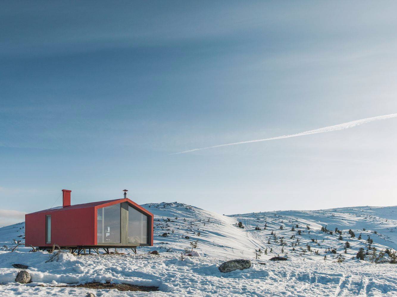 內(nèi)部空間可以同時為8人使用。架床環(huán)繞在中央房間周圍,中間是一張大家可以圍坐在一起的桌子。所有的架床都可以被拆下來,床下面的空間為儲物而設計。大廳可以用來存放外衣。室內(nèi)的色調(diào)盡可能地簡約,讓人們把注意力都留給窗外的山景。