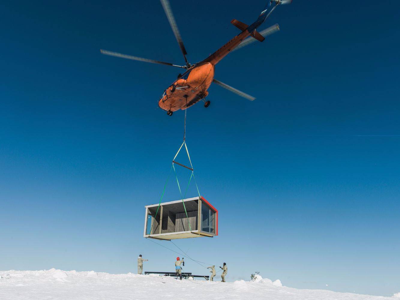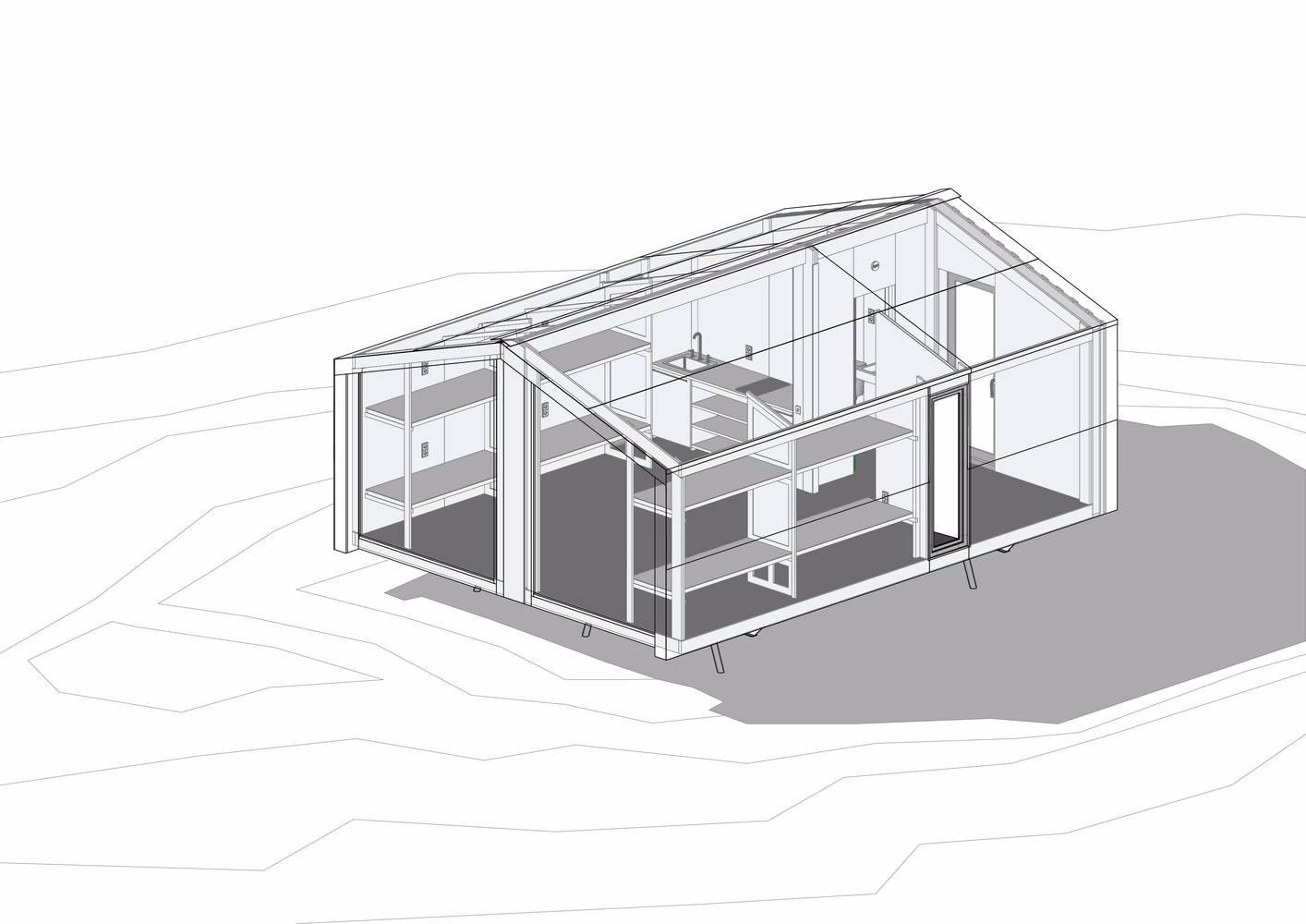這個項目的設計基于 DublDom 的標準化模塊,室內(nèi)空間全部重新設計來適應山區(qū)環(huán)境。直升機是唯一可以將房子運過去的途徑,所以整個建筑在重量最低的情況下,達到了最高標準的耐久性和能源效率。高科技材料的使用讓我們能夠把房子的重量減半。材料和涂料的使用都經(jīng)過準確的計算,能夠讓它們在低溫和高風力負荷下使用。