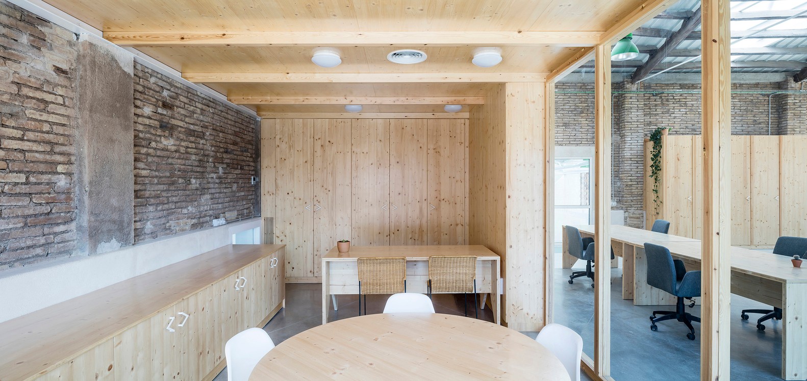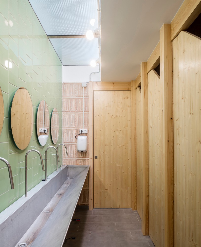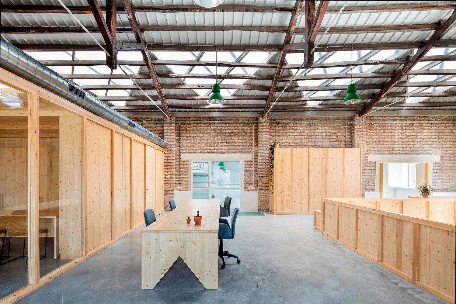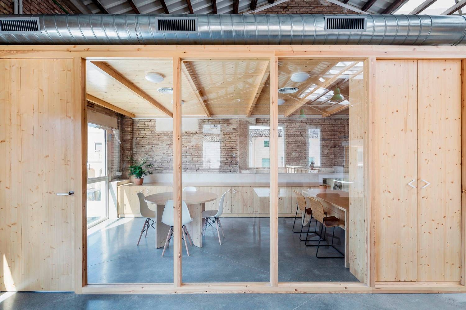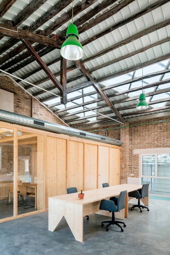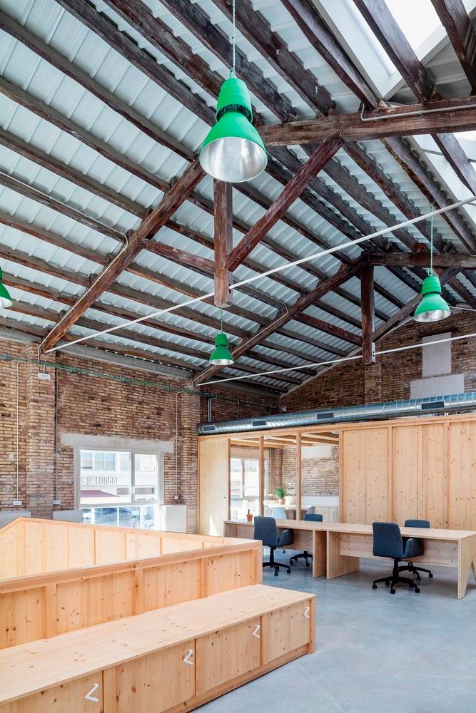 舊倉庫的改造是通過與原有特征相互關(guān)聯(lián)的各種具體措施來實(shí)現(xiàn)的,例如構(gòu)造一個(gè)新的雙層空間,打開新的窗戶和新的天窗以改善建筑的照明和空間條件,以及建造輕型木質(zhì)結(jié)構(gòu)來定義私人辦公室。在嘗試保留原始結(jié)構(gòu)本質(zhì)的同時(shí),拆除,改造和增加空間。