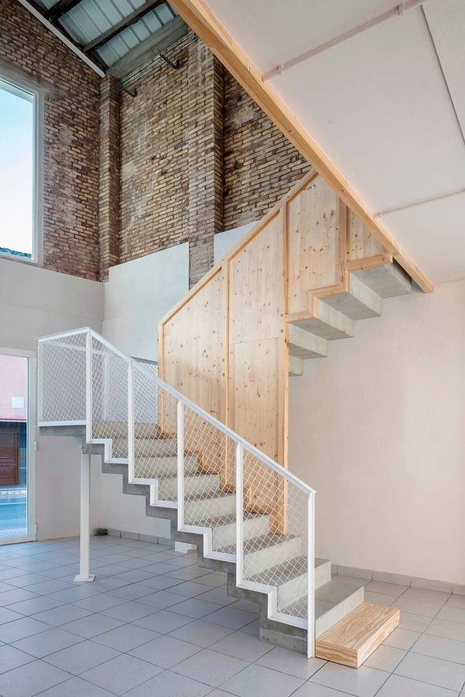 最后,建筑師重新解讀貝尼塞奈住宅區(qū)城市肌理的傳統(tǒng)幾何性和組合規(guī)則,在新工廠,原始倉庫和周圍環(huán)境之間整合并建立必要的城市連續(xù)性,并精心考慮了結(jié)構(gòu)凸窗的尺寸,屋頂斜坡的韻律和側(cè)立面的輪廓,間隔的大小,位置和比例,以及局部用砂漿覆蓋的熱粘土墻的結(jié)構(gòu)處理與調(diào)整,同時(shí)整合現(xiàn)有城市形態(tài)中新建筑約20x30m的立面。