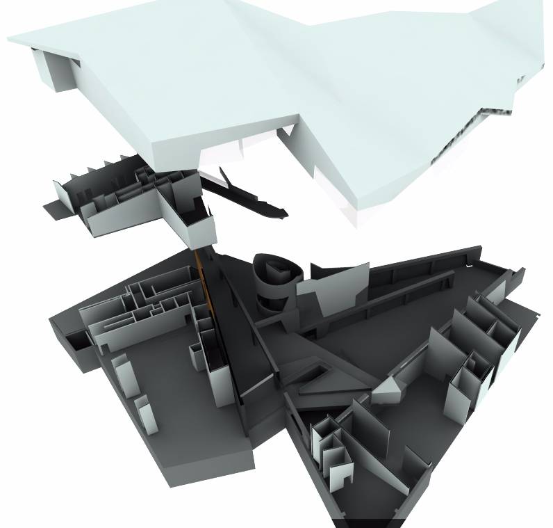 ▼建筑的結構和空間布局引用了專門用于考古學野外作業(yè)的保護性結構的形態(tài)