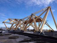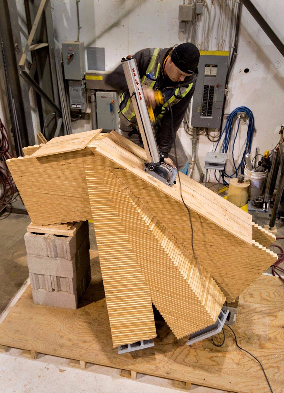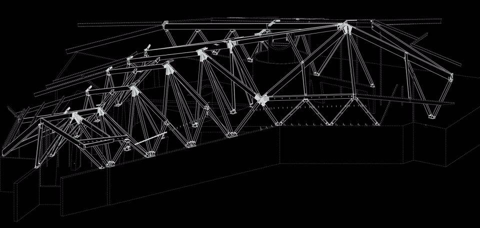 ▼大型木柱系統(tǒng)使博物館形如雕塑的獨特造型成為可能