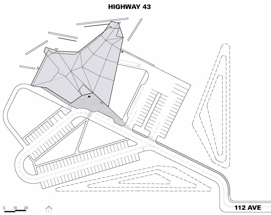作為世界級的研究和教育設施,Philip J. Currie恐龍博物館以阿爾伯塔省的古生物和地質歷史為中心,通過敘事性的方式為參觀者提供了獨特的建筑體驗。建筑所在的溫布利小鎮(zhèn)位于Grande Prairie東部,這里共有1516位居民。博物館策略性地將地址選在了煙斗石溪骨床(Pipestone Creek Bonebed)旁邊,它是全世界最密集的恐龍骨床,同時也是現代歷史中發(fā)現的最重要的五個骨床之一。博物館旁邊的43號高速公路是通向加拿大北部地區(qū)和阿拉斯加地區(qū)的主干道,從而吸引了大量恐龍愛好者和旅客前來參觀,并且很快成為該地區(qū)最具前沿性的建筑之一。