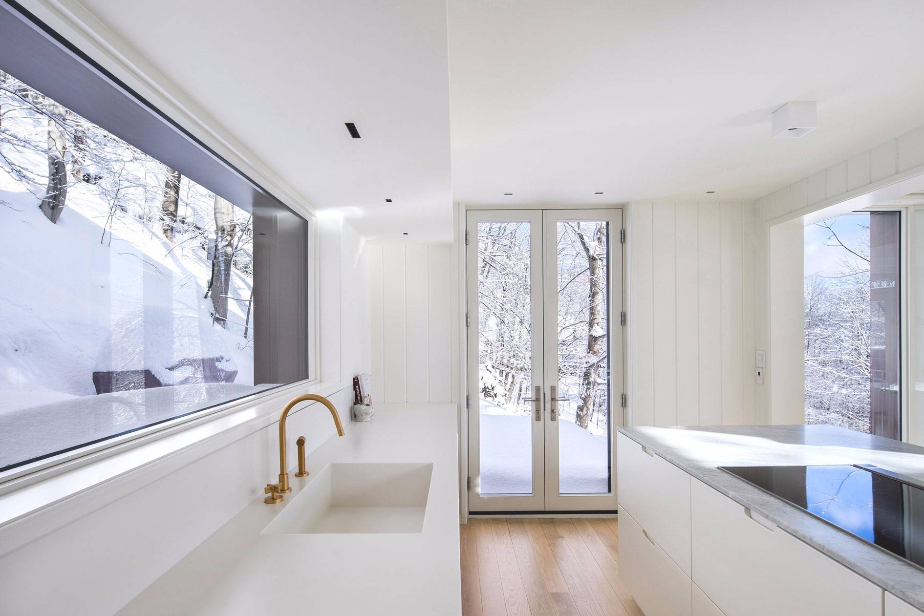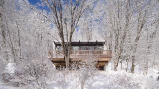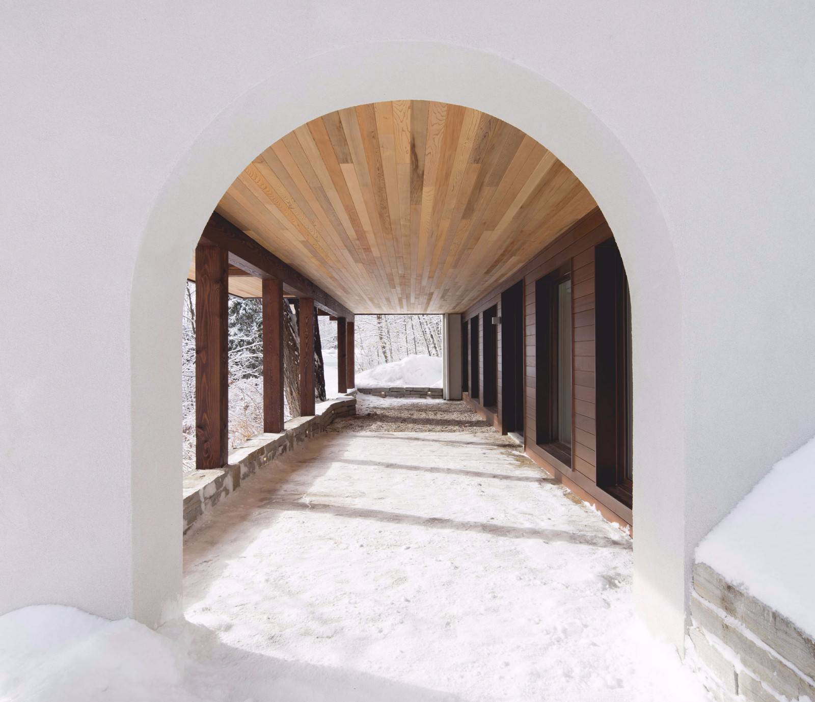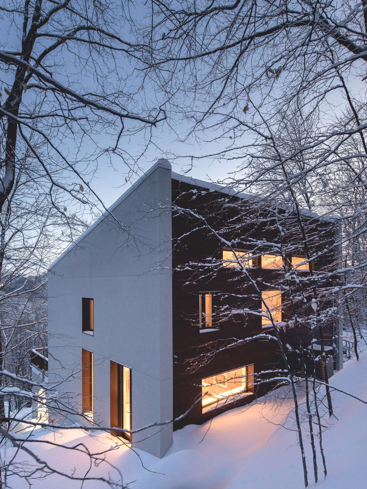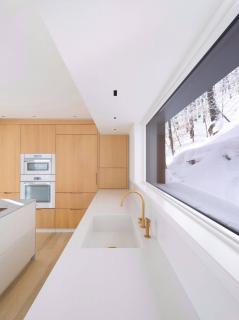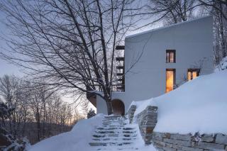 這家總部位于蒙特利爾的工作室已經(jīng)在滑雪勝地——Laurentians地區(qū)完成了一些其他的住宅,包括四個(gè)體量相交于一點(diǎn)的住宅,以及一座由開闊露臺(tái)劃分高低樓層的住宅。