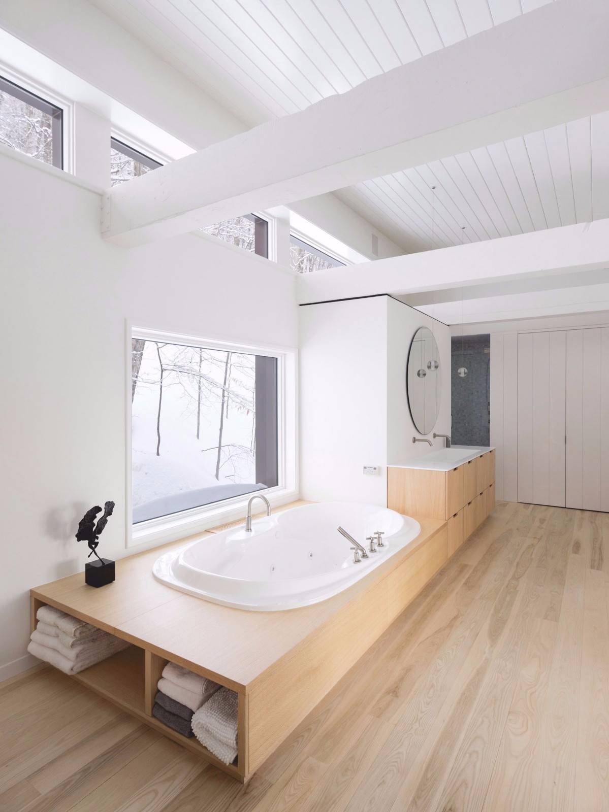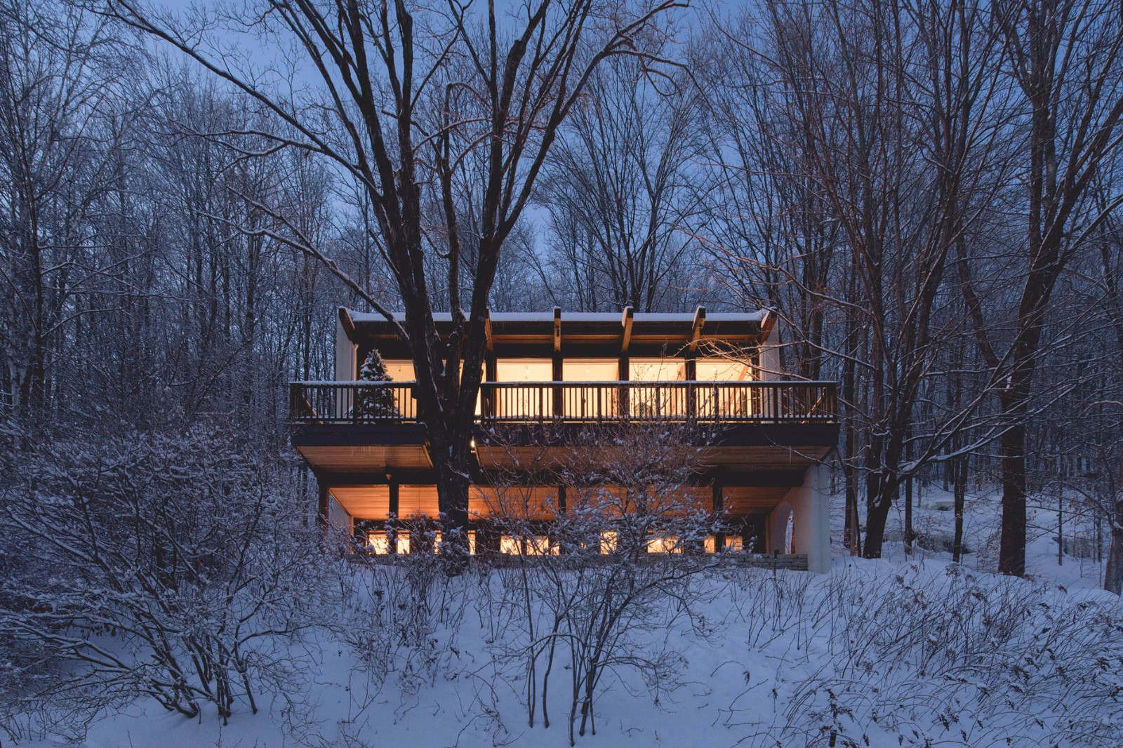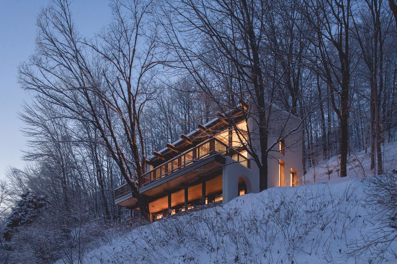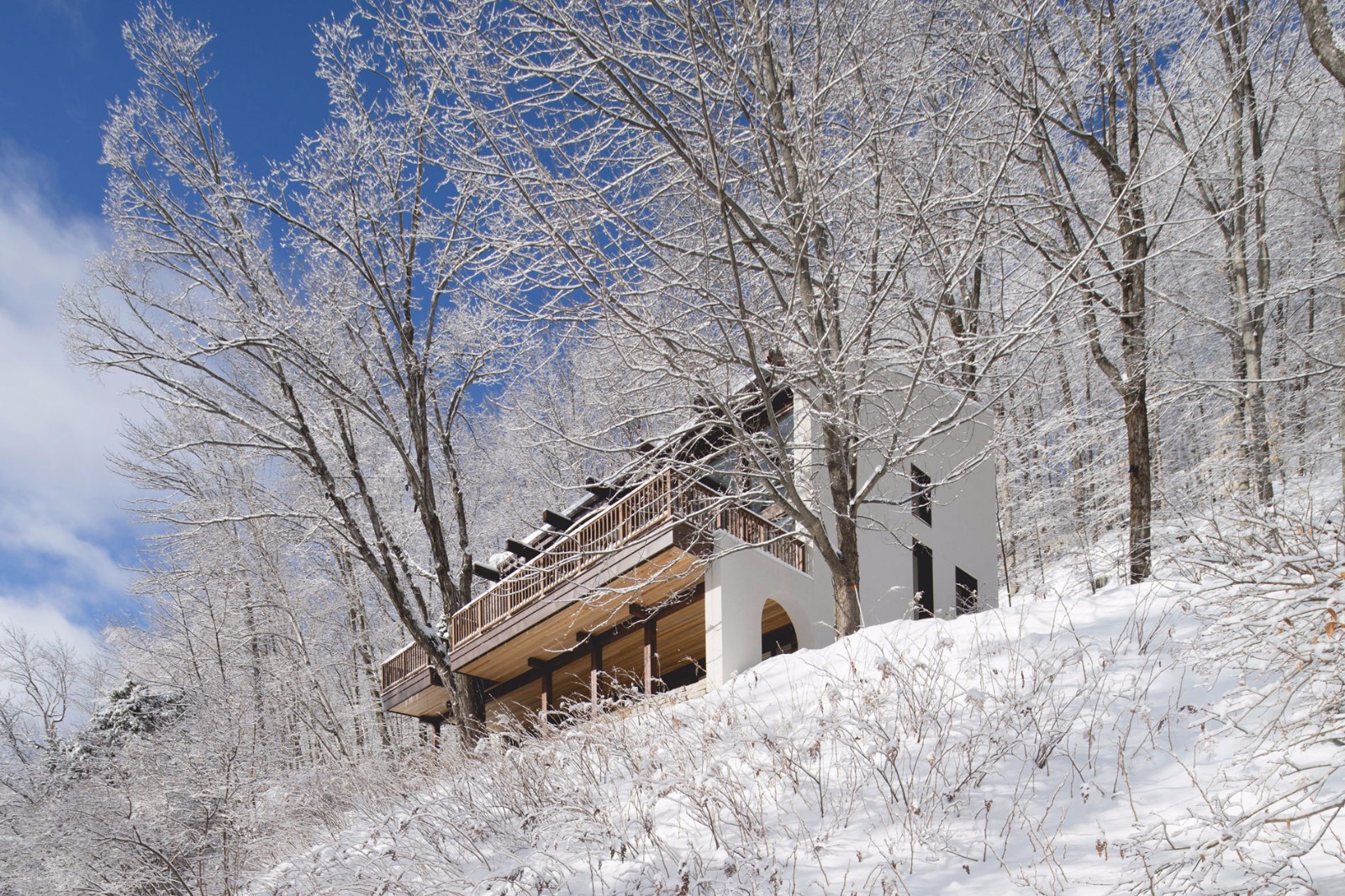 這家總部位于蒙特利爾的工作室已經(jīng)在滑雪勝地——Laurentians地區(qū)完成了一些其他的住宅,包括四個(gè)體量相交于一點(diǎn)的住宅,以及一座由開闊露臺(tái)劃分高低樓層的住宅。