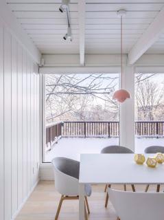 坐落在Laurentians地區(qū)的St-Sauveur小鎮(zhèn)郊外,馬里布小屋(RésidenceMaribou)需要進(jìn)行徹底地改頭換面,因?yàn)槠浣Y(jié)構(gòu),保溫層和外墻都受到了損害。 然而,業(yè)主不忍心將它拆毀,所以選擇了大面積的翻修。