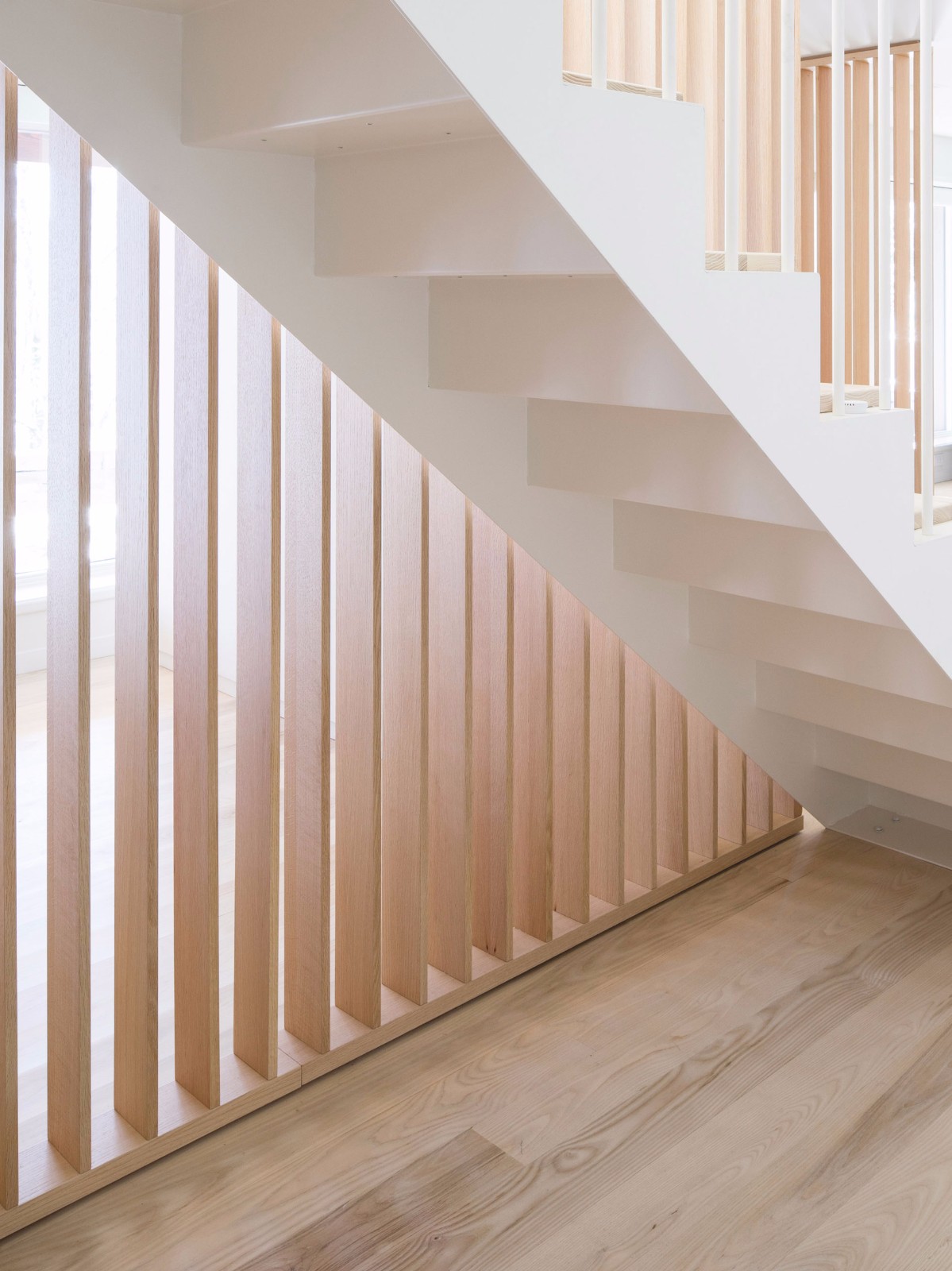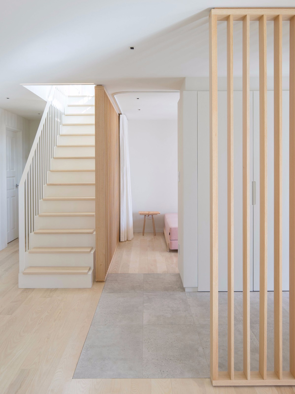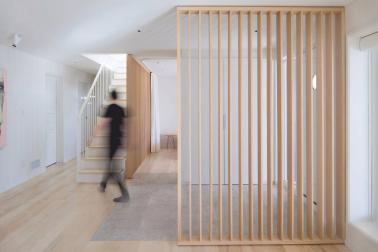 建筑師推翻了這座225平方米住宅的原有布局,將主入口設(shè)置在鄰近車道的位置?!爸暗娜肟趯儆谏蠈涌臻g,”該公司說?!皩⑵涓拷嚨老笳髦δ芎蛢?nèi)部交通的徹底重置?!?/p>