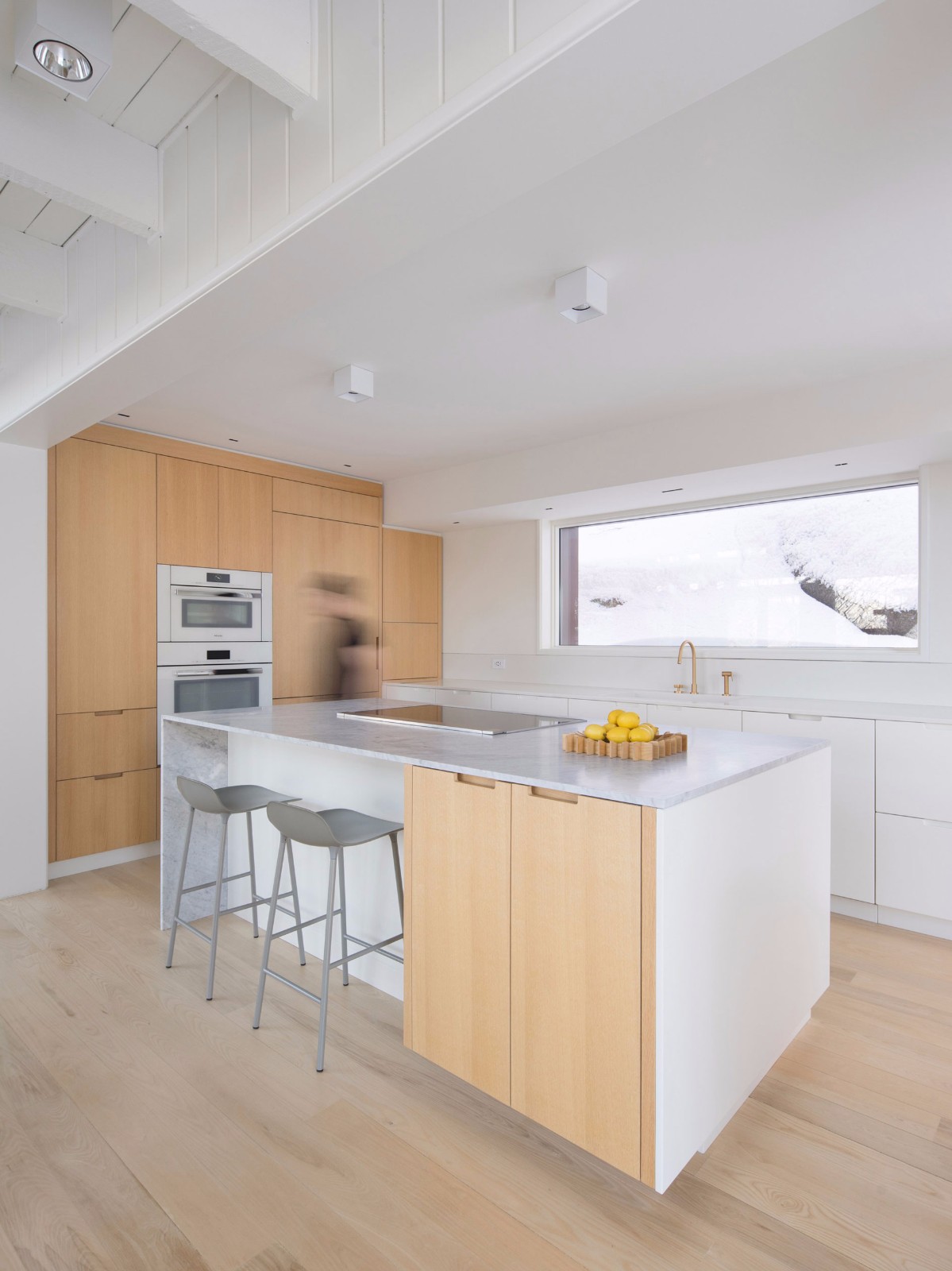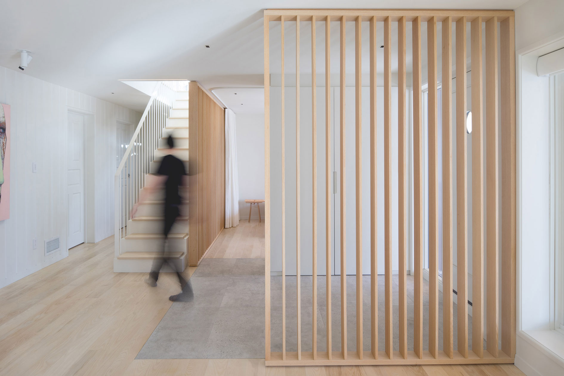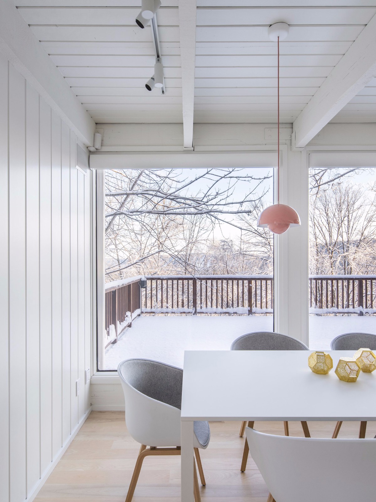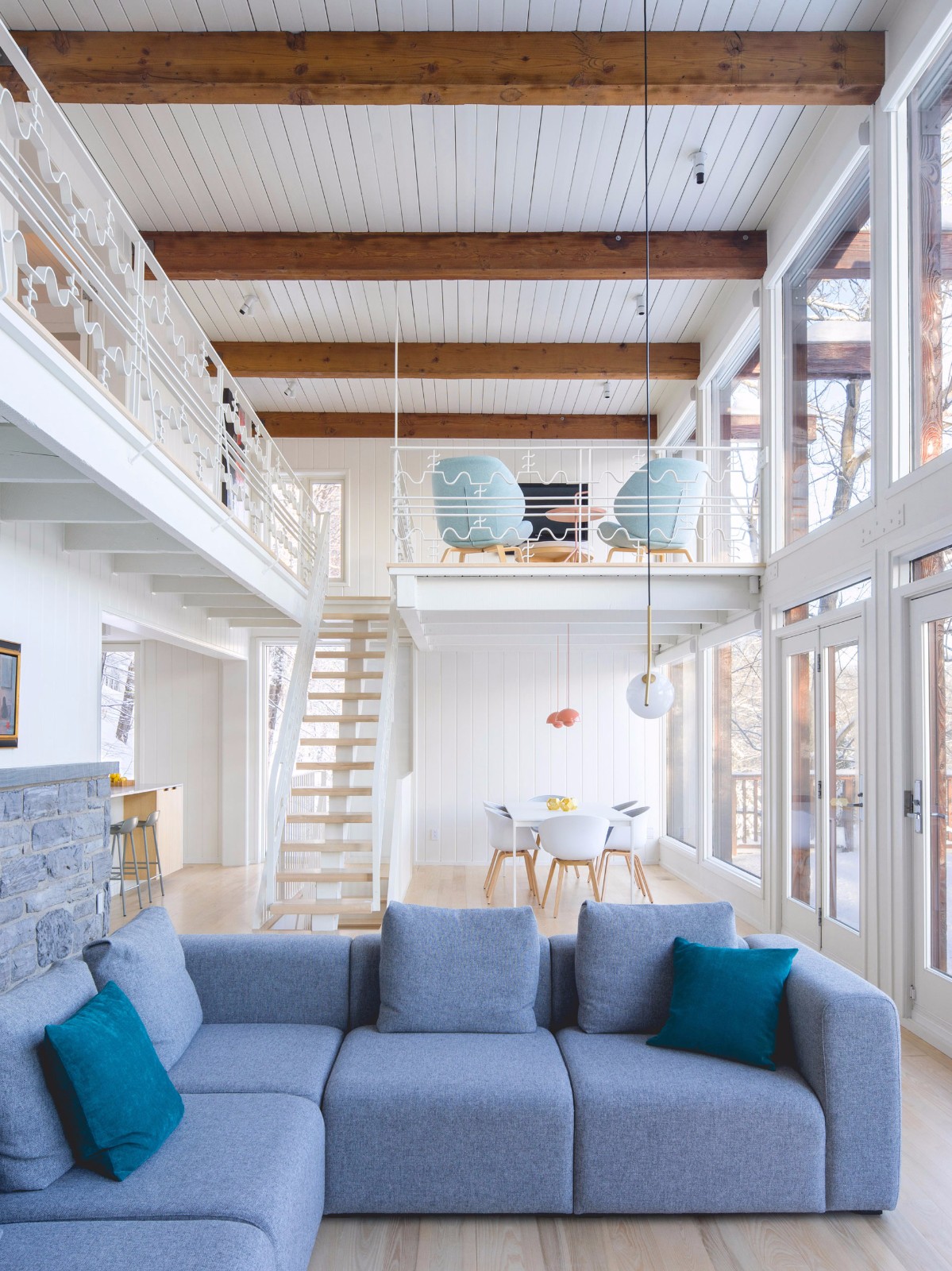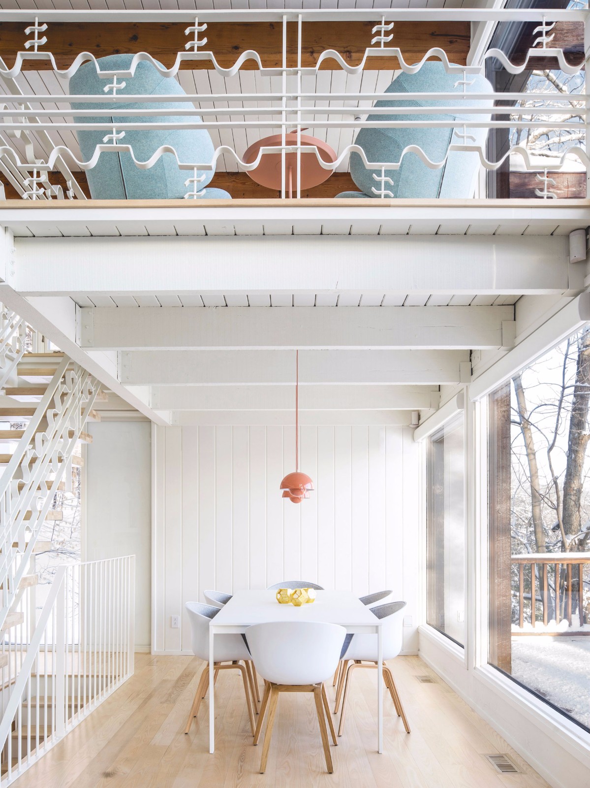 在室內(nèi)設(shè)計(jì)的過程中,Alain Carle Architecte參考了本世紀(jì)中葉斯堪的納維亞的設(shè)計(jì)風(fēng)格。 該工作室說:“該建筑最初建于20世紀(jì)60年代,正好與同時(shí)期斯堪的納維亞建筑的特征相吻合?!?/p>
