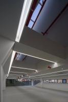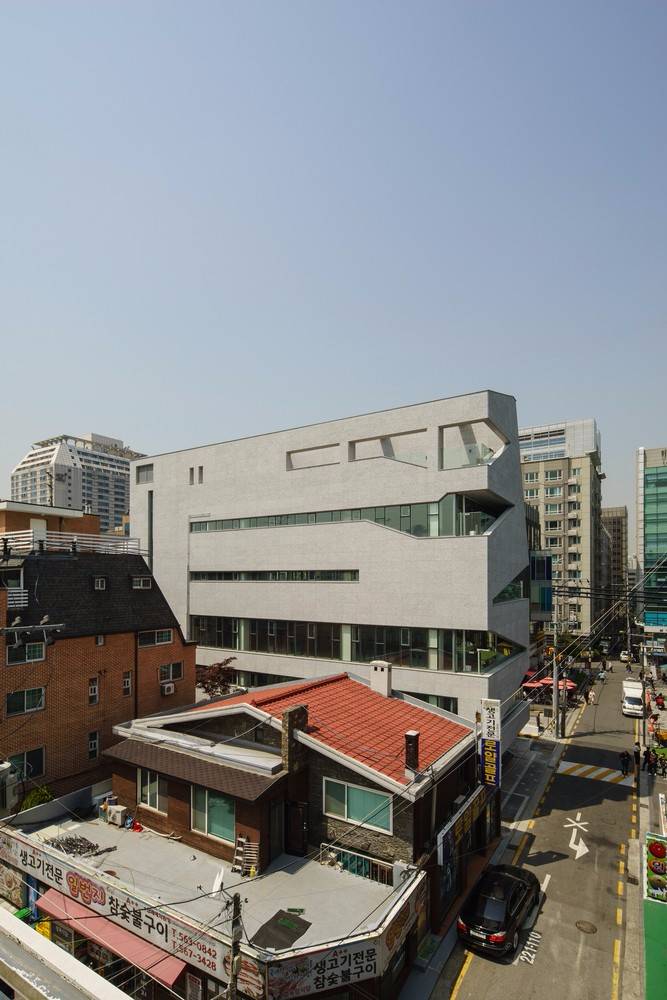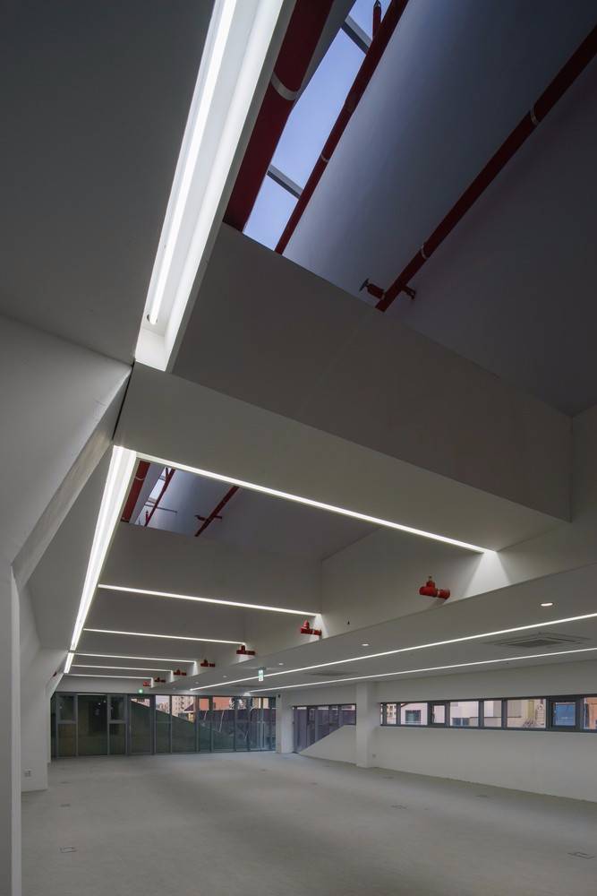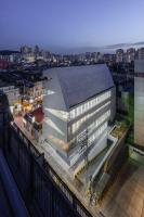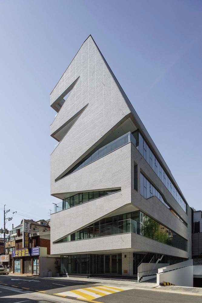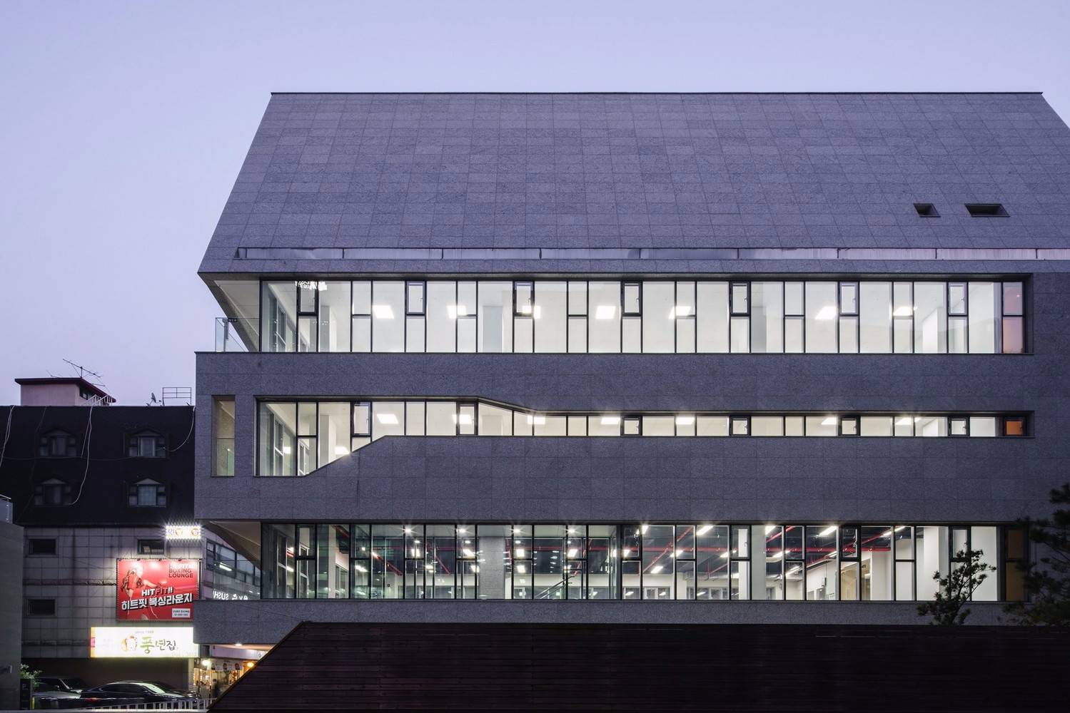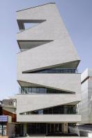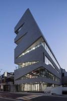 每個樓層都有一個感受室外空氣的陽臺,而五樓的挑高天花板為室內(nèi)帶來了照明。即使要改變屋頂?shù)挠猛?,它的?gòu)造也易于擴展。建筑還使用了石材作為裝飾材料,帶來了統(tǒng)一的氛圍。整塊切割的石材表面與玻璃表面形成對比。